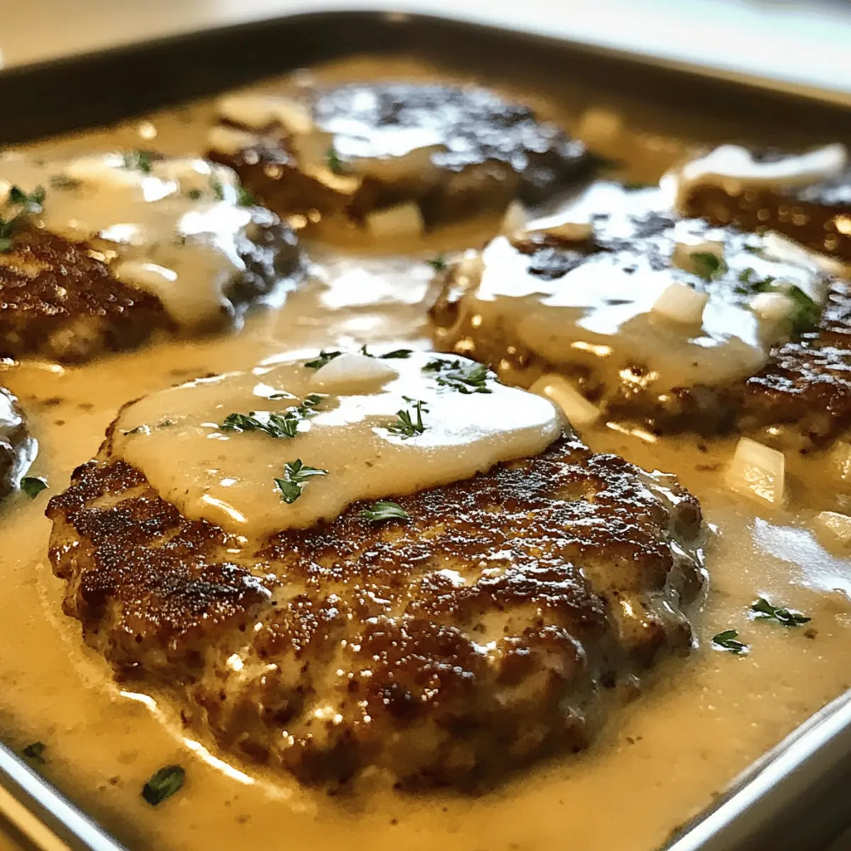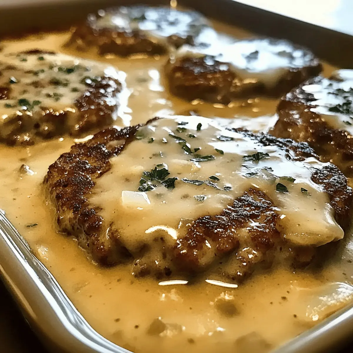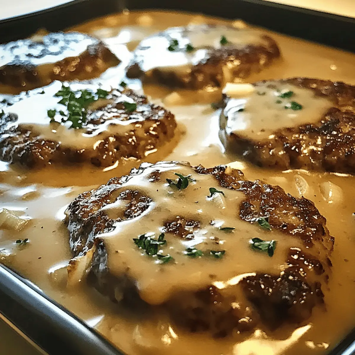 All-in-One Casserole: Add cooked noodles or rice underneath the patties before pouring in the gravy. This turns it into a hearty one-dish meal, perfect for busy weeknights.