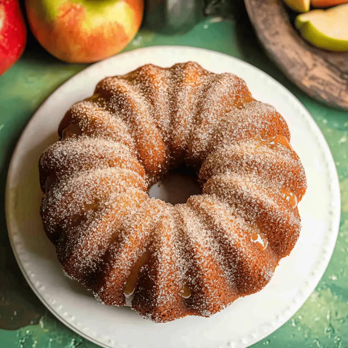 Once the cake has cooled enough to handle, brush it generously with the warm cider glaze. For a delightful finishing touch, mix together ¼ cup of granulated sugar with 2 teaspoons of cinnamon and sprinkle this mixture over the glaze. The coating adds a lovely crunch and sweetness, reminiscent of your favorite cider donuts.