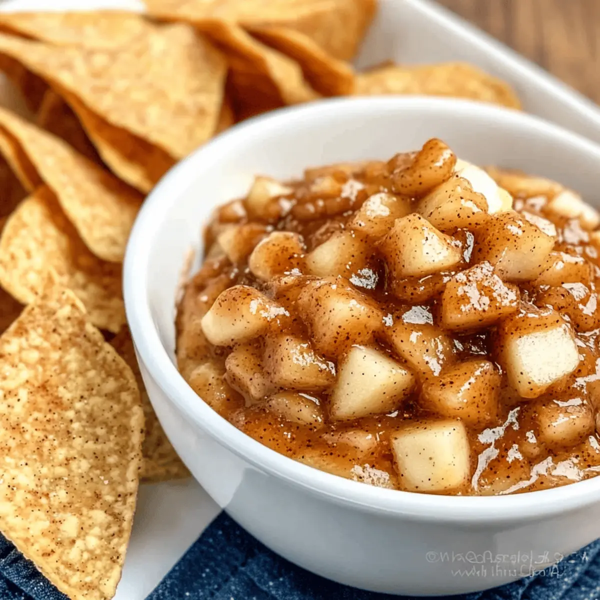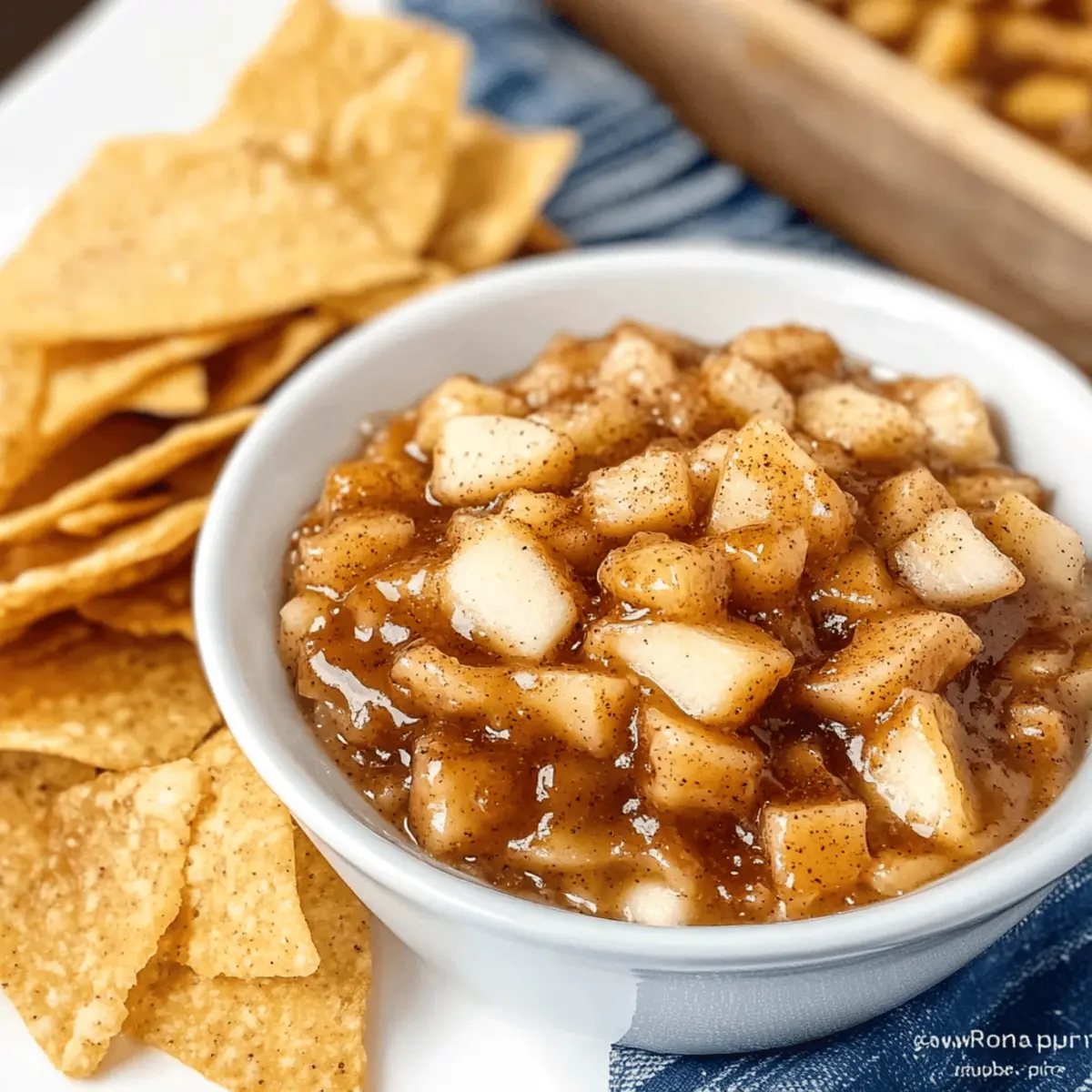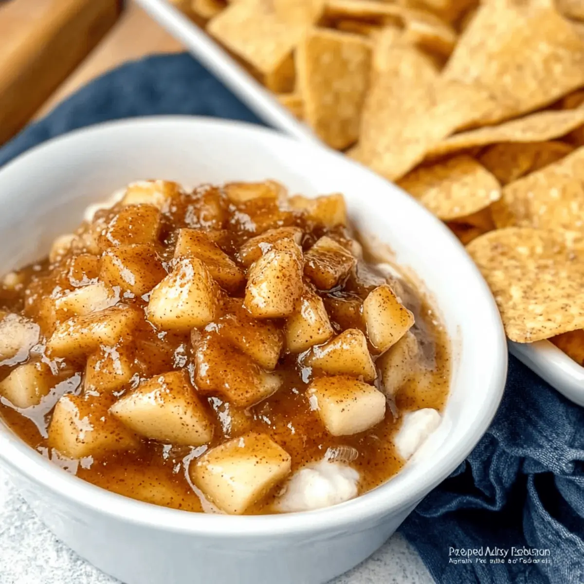 These delicious Apple Pie Dip and cinnamon sugar tortilla chips are perfect for meal prep! You can prepare the apple mixture up to 24 hours in advance; simply combine the diced apples, brown sugar, granulated sugar, cinnamon, and lemon juice, then refrigerate in an airtight container. To maintain the dip’s quality and prevent browning, add a bit more lemon juice if necessary. The cinnamon sugar tortilla chips can be made up to 3 days in advance; after baking, store them in an airtight container to keep them crisp. When you’re ready to serve, simply reheat the dip gently on the stovetop, and enjoy that comforting, homemade taste with minimal effort!