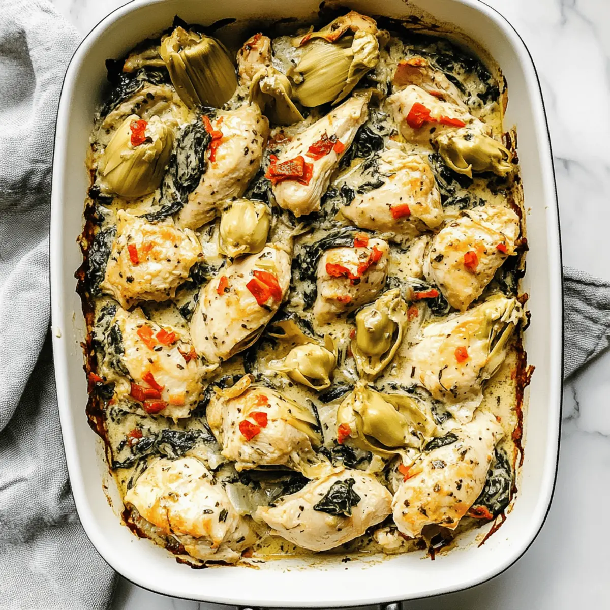A delicious Artichoke Baked Chicken recipe that perfectly combines creamy sauce and tender chicken for a quick, healthy dinner.