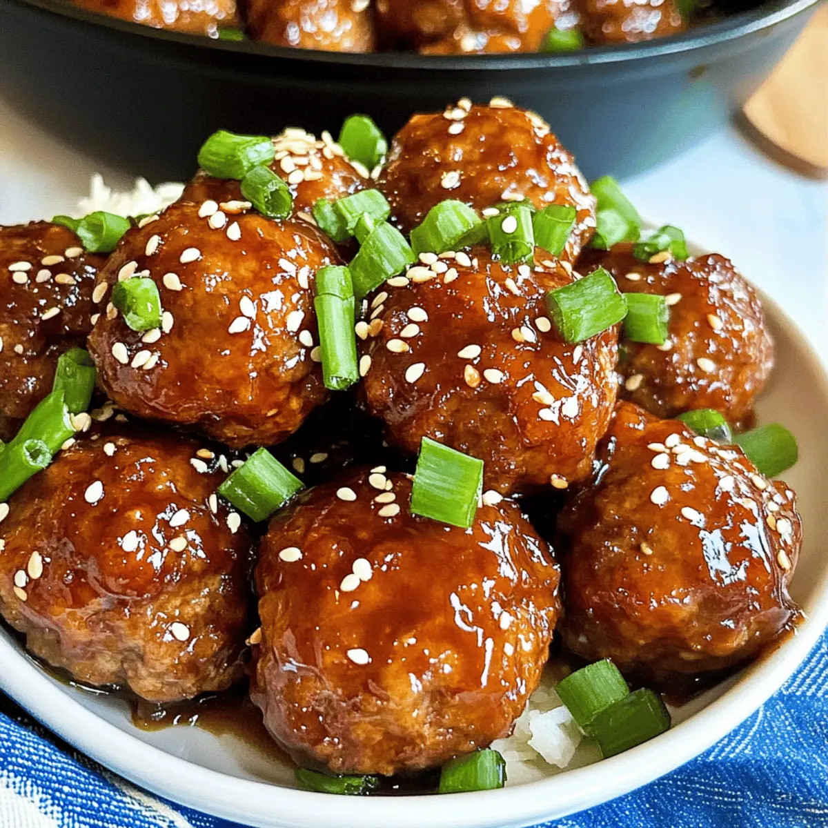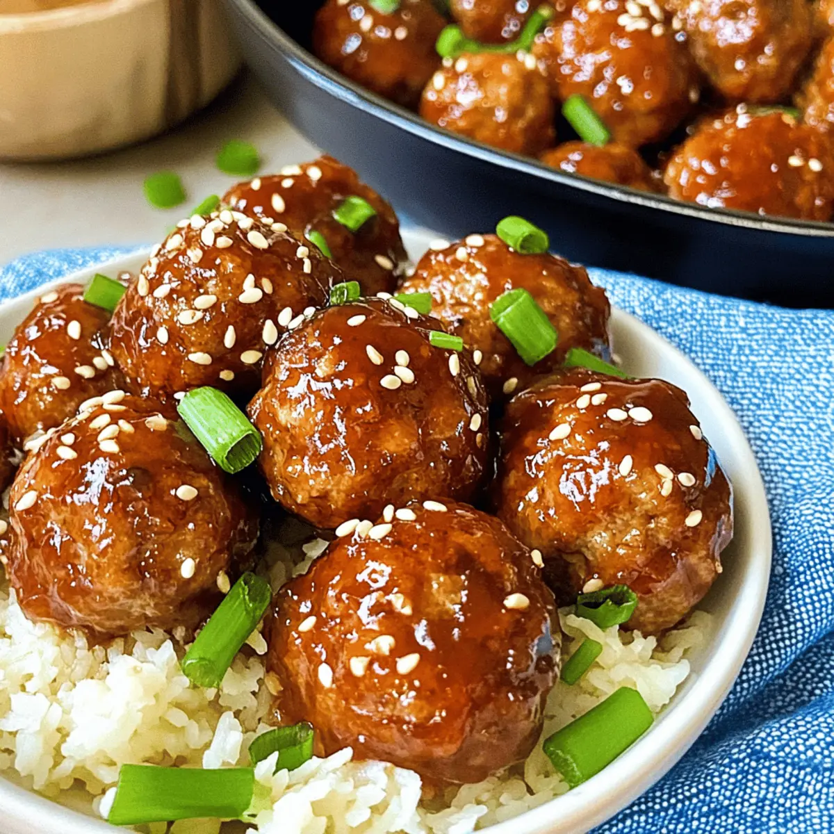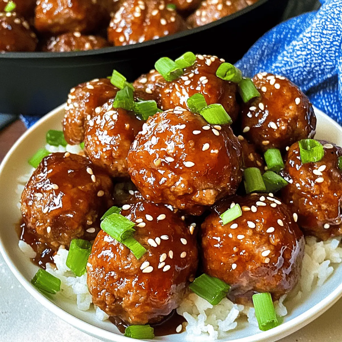 - Serve meatballs over jasmine rice or noodles, garnishing with sesame seeds and chopped green onions.