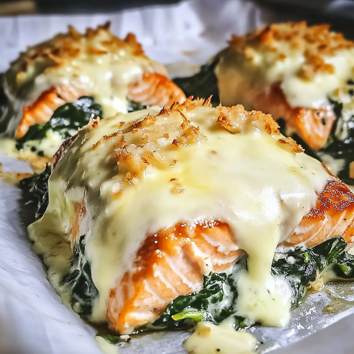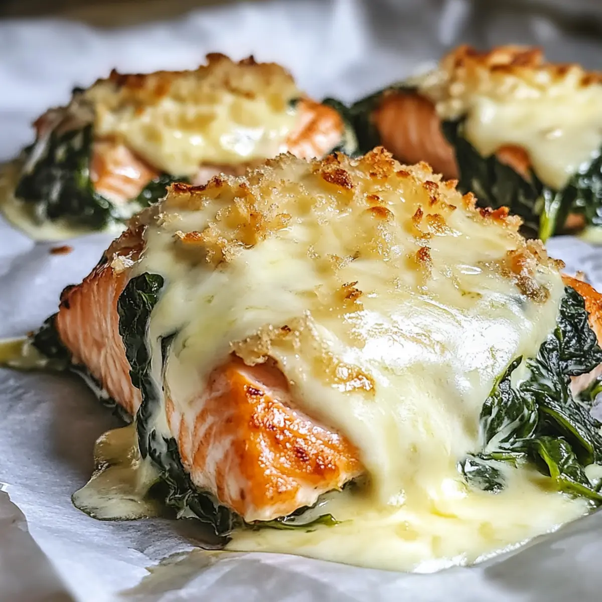 Flavorful Base: Spread a layer of pesto on the salmon before adding the creamy spinach. This adds a fragrant, herbaceous layer that makes each bite unforgettable.