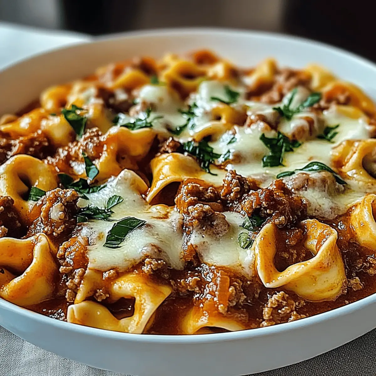 The comforting embrace of a warm meal is unrivaled, especially on chilly evenings. That’s where my Beefy Tortellini Bake comes into play—an easy weeknight dinner that transforms simple ingredients into a complete, mouthwatering experience. This dish bursts with rich marinara and cheese, wrapping tender cheese-filled tortellini in a hearty meat sauce, making it a crowd-pleaser for both family gatherings and cozy nights at home. Not only is it quick to whip up, but it also allows for delightful variations, like swapping ground beef for turkey or adding vibrant veggies. Perfect for those of us seeking a homestyle meal that doesn’t compromise on flavor or effort, this bake is destined to become a staple in your kitchen. Are you ready to dive into this hearty comfort food delight?