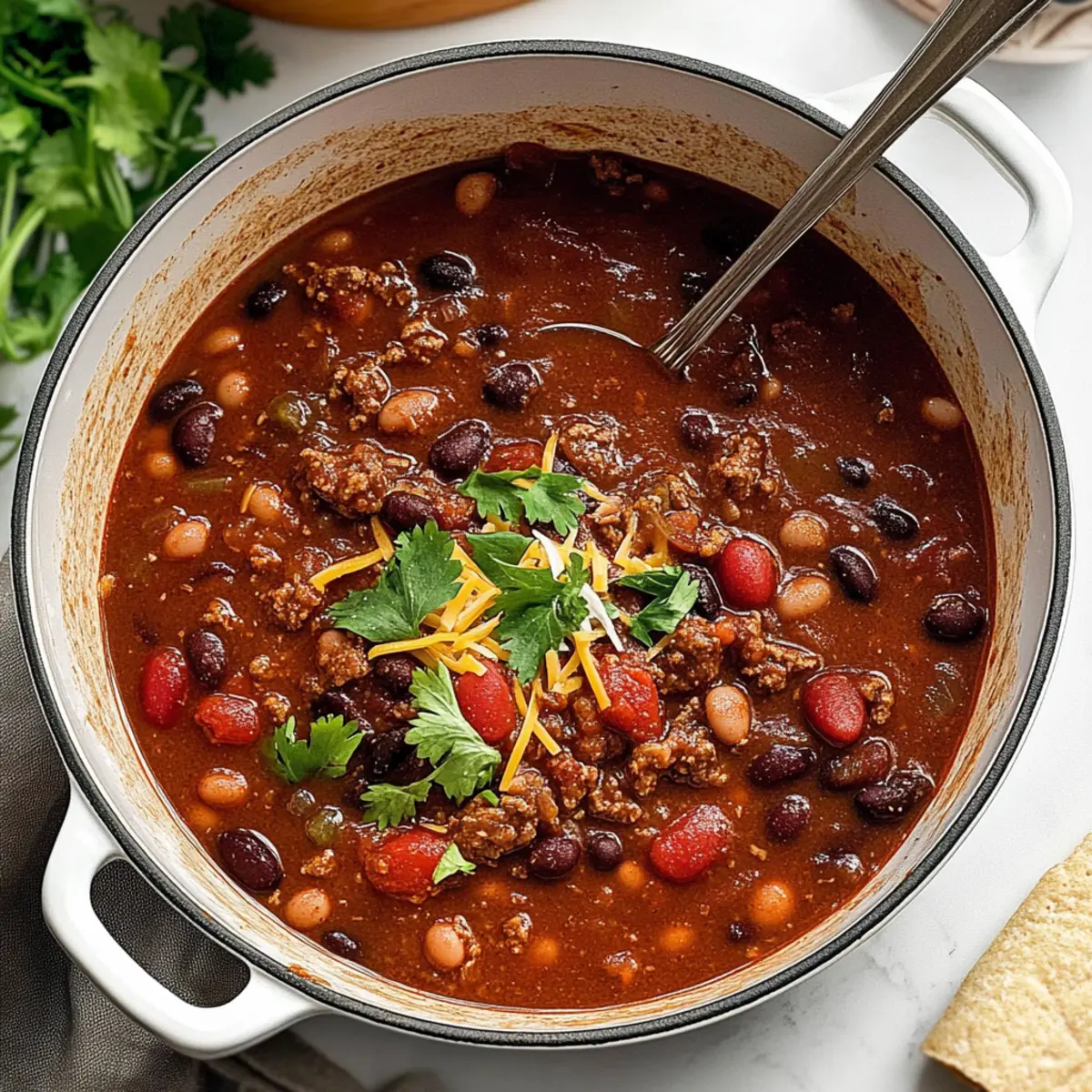 • Use a Dutch Oven: A large pot or Dutch oven is ideal for cooking this hearty chili, allowing even heat distribution and adequate space for all ingredients.