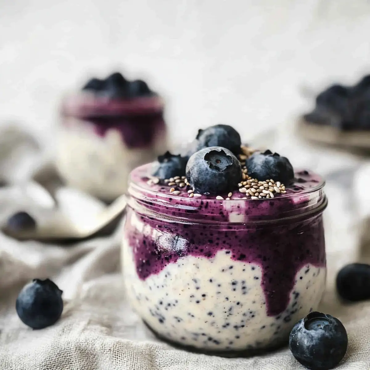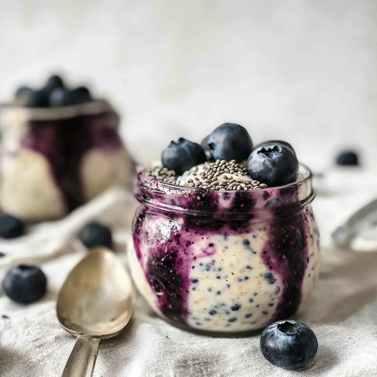 These Blueberry Cheesecake Overnight Oats are perfect for busy cooks looking to save time during the week! You can prepare the entire mixture—combining oats, chia seeds, cream cheese, Greek yogurt, maple syrup, almond milk, and vanilla—up to 24 hours in advance, allowing the flavors to meld beautifully while chilling. Additionally, you can mash and layer the blueberries ahead of time, storing them separately in the fridge for freshness. Just remember to seal your jars tightly to maintain quality. When you’re ready to serve, simply add the blueberry layer on top or mix them in and enjoy cold or warm it up in the microwave for 30 seconds. You’ll have a delicious, guilt-free breakfast ready with minimal effort!