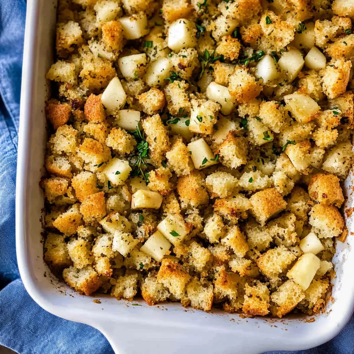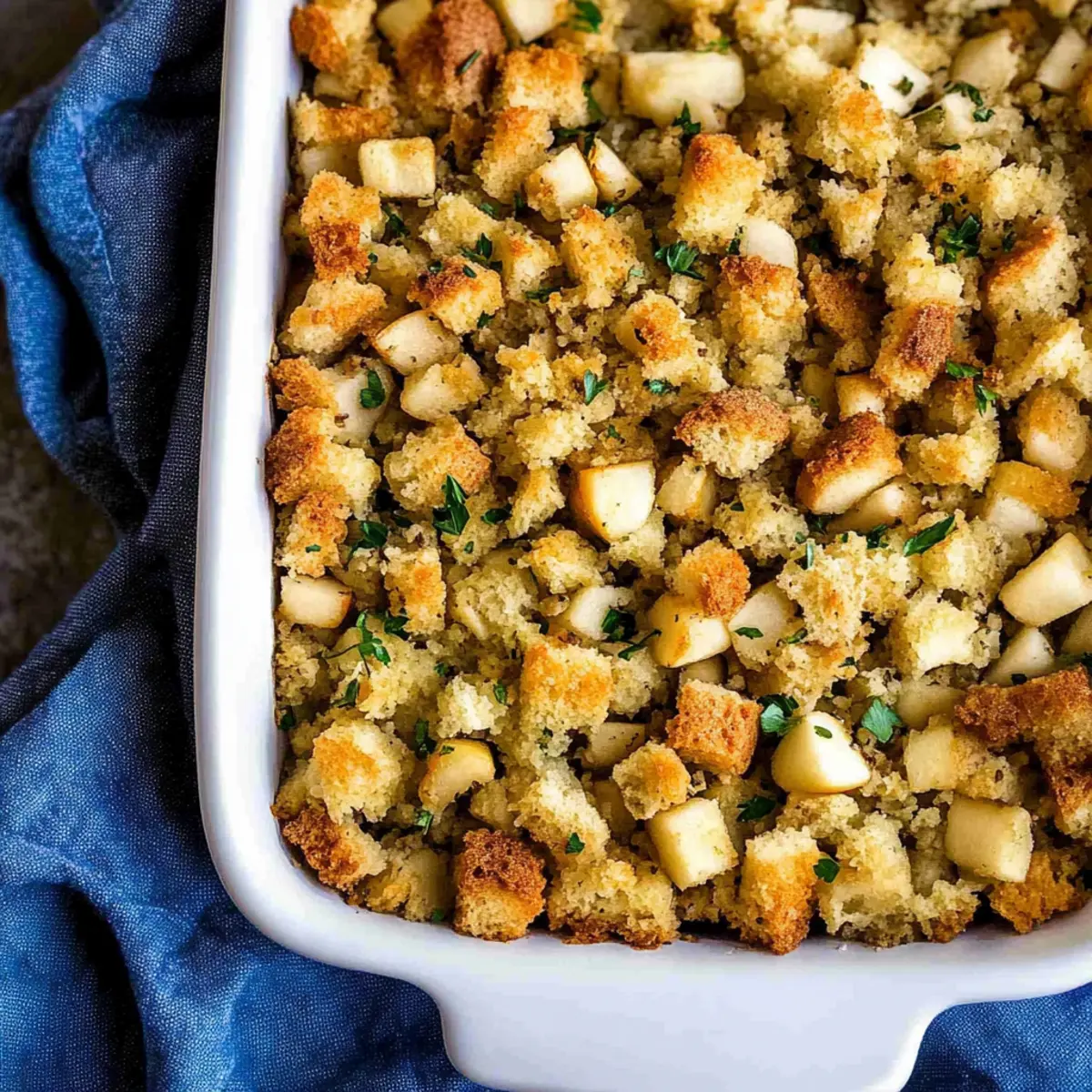 As I was navigating the bustling aisles of my local grocery store, a vibrant display of fresh apples caught my eye, instantly transporting me to my grandmother’s cozy kitchen, where the aroma of baked goods was a daily delight. This Gluten-Free Apple Bread Stuffing is my heartfelt tribute to those cherished memories, transforming the holiday staple into a dish everyone can enjoy. With its moist texture and the harmonious blend of sweet apples and savory herbs, this bread stuffing is not only remarkably easy to whip up but also a guaranteed crowd-pleaser at family gatherings. Perfect for those who seek comfort without the gluten, you’ll find this stuffing elevates any meal with a nostalgic twist. Ready to discover how to make this delightful addition that warm hearts and bellies alike? Let’s dive in!