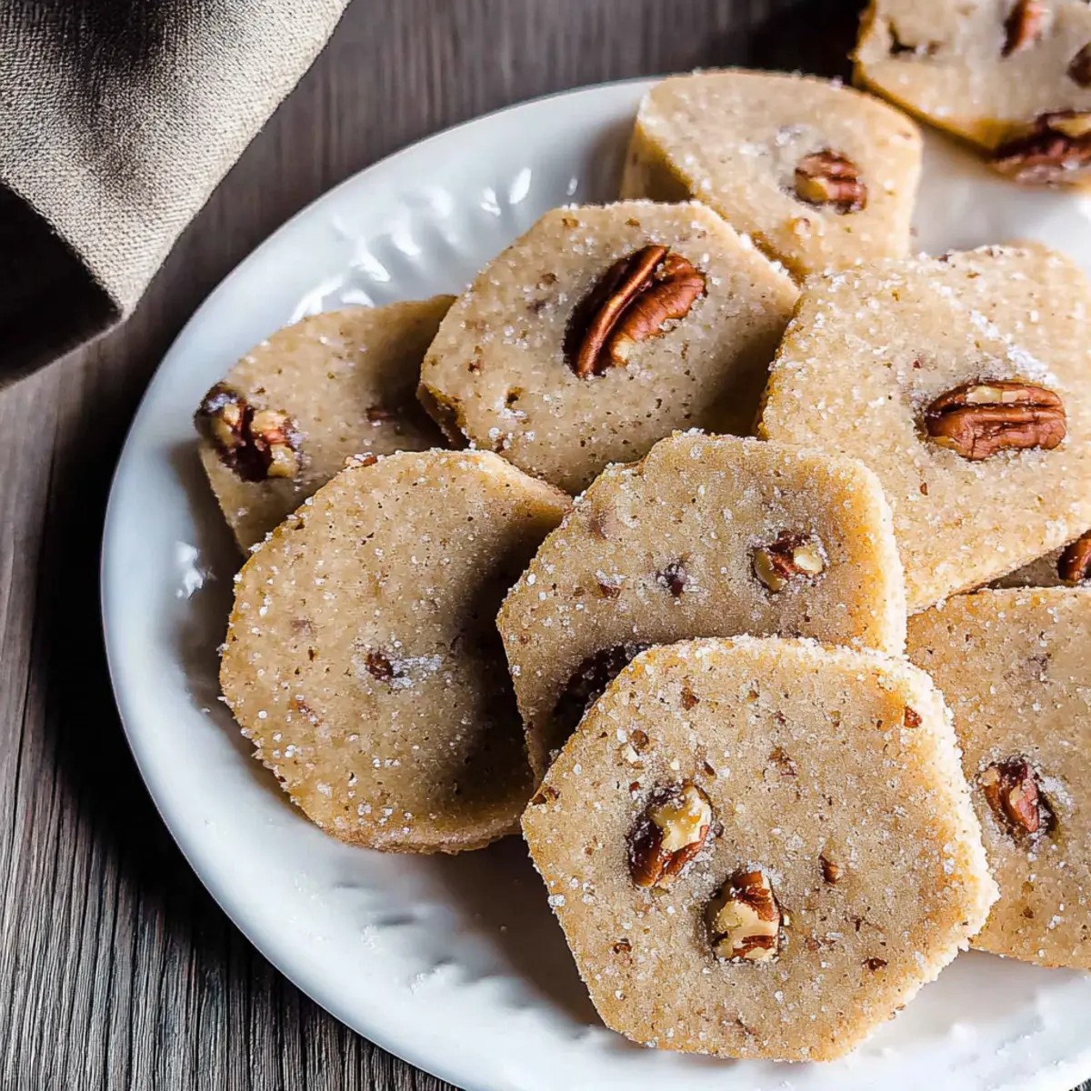 Use unsalted butter at room temperature for the best results. Toast pecans until golden for enhanced flavor, and always chill the dough before slicing.