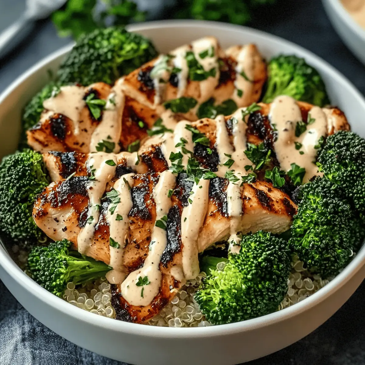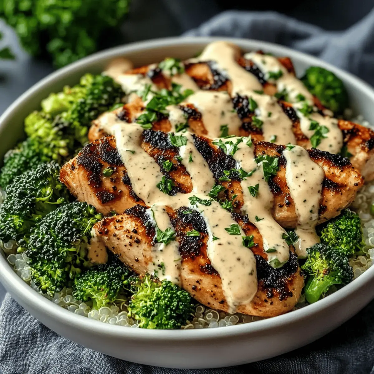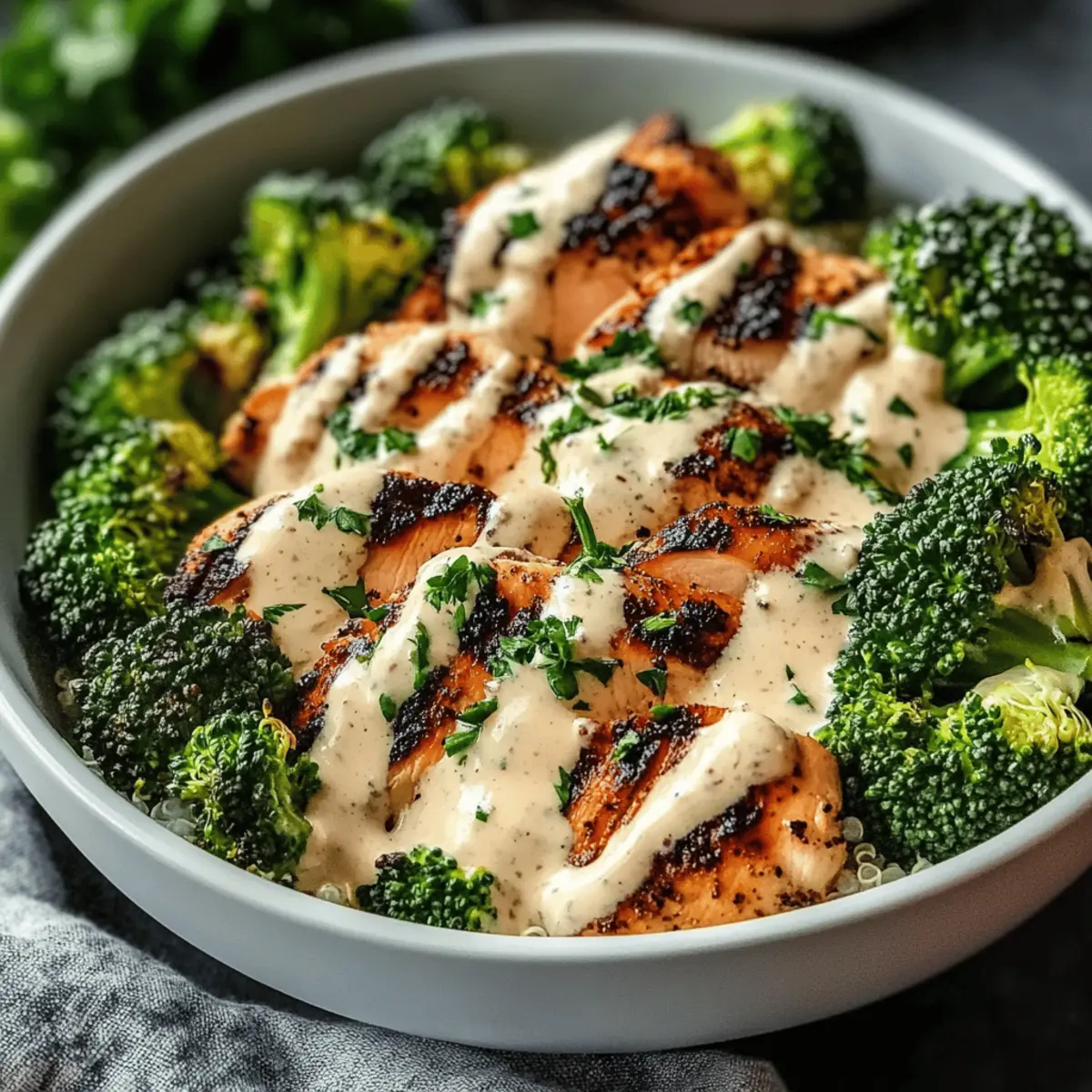 Now it’s time to bring your Grilled Chicken & Broccoli Bowls to life! In each bowl, start by layering the cooked grains as your base. Top with slices of the grilled chicken and a generous portion of roasted broccoli. Drizzle the creamy garlic sauce over everything, ensuring that delightful richness is evenly distributed. Finally, garnish with fresh herbs like parsley or chives for a pop of color and flavor.