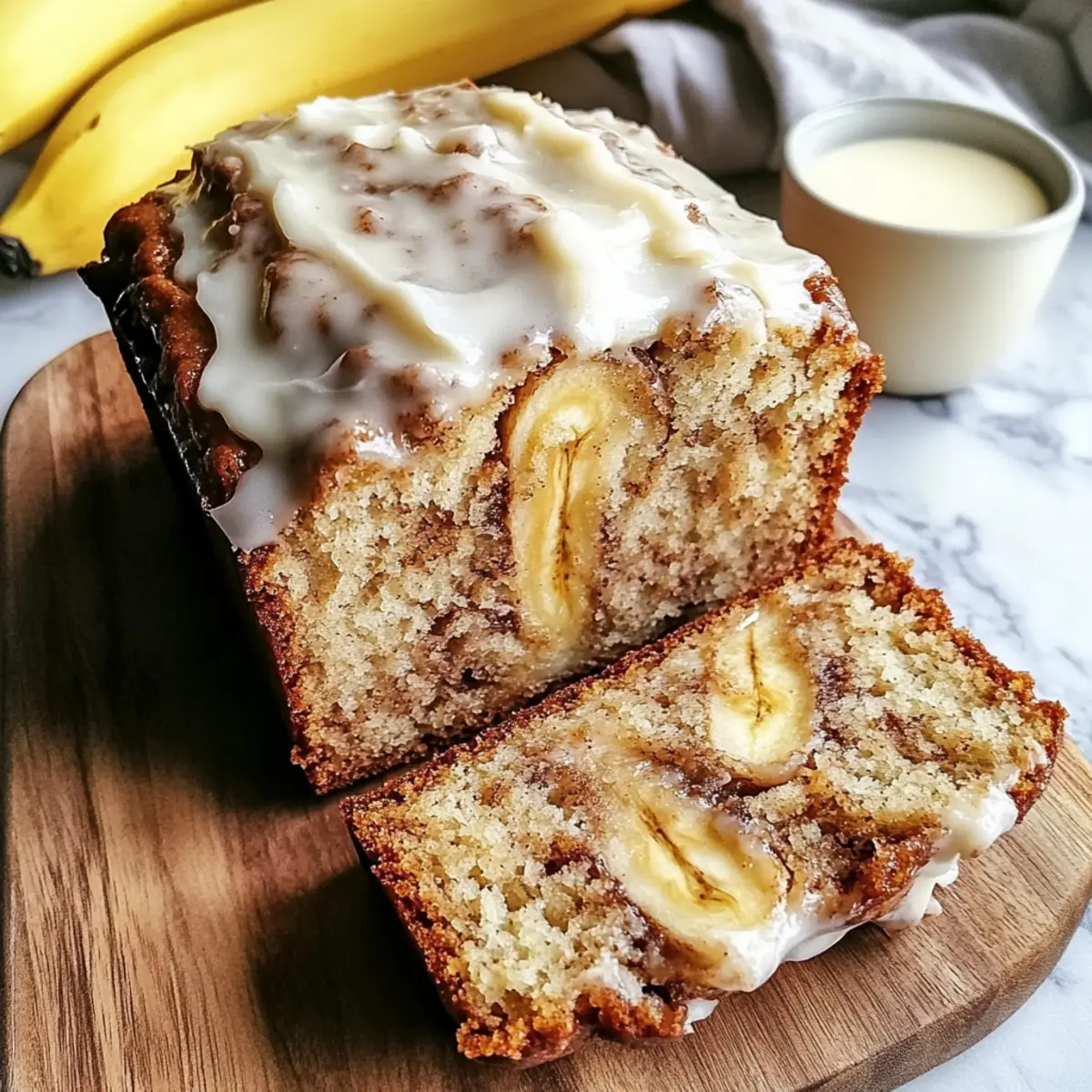 Unique Flavor Fusion: This Cinnamon Roll Banana Bread combines two beloved treats into one heavenly slice, making it irresistibly delightful.