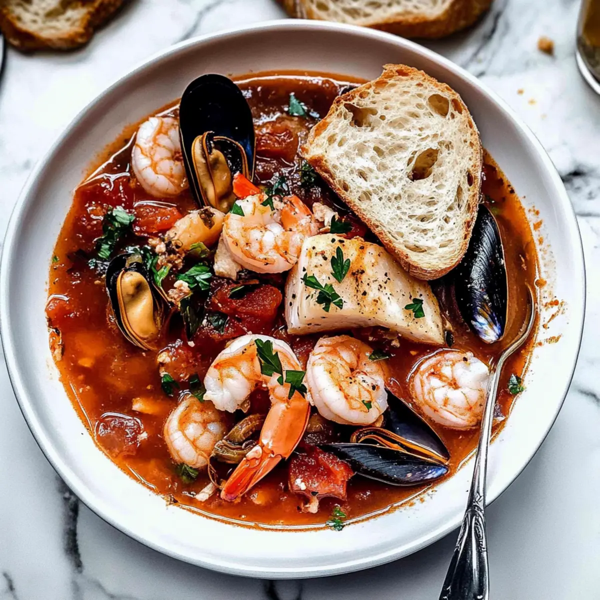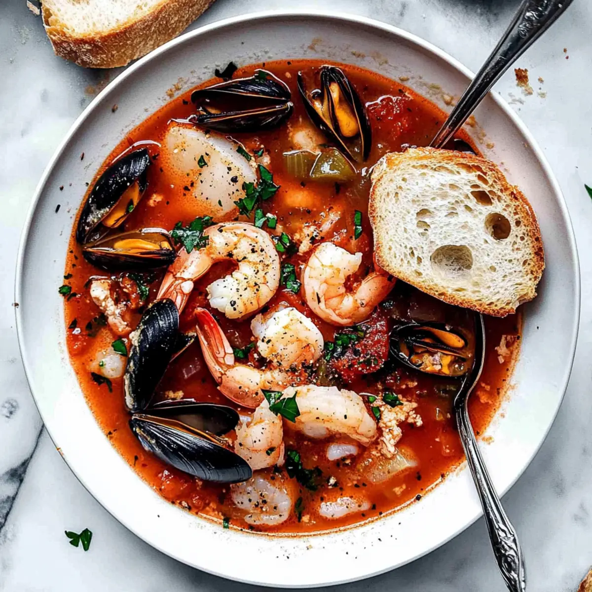 Before serving, discard any unopened mussels and clams. Ladle the steaming Cioppino Seafood Stew into shallow bowls. Garnish generously with minced parsley for a fresh touch, and don’t forget to offer slices of crusty sourdough baguette for that perfect dip.