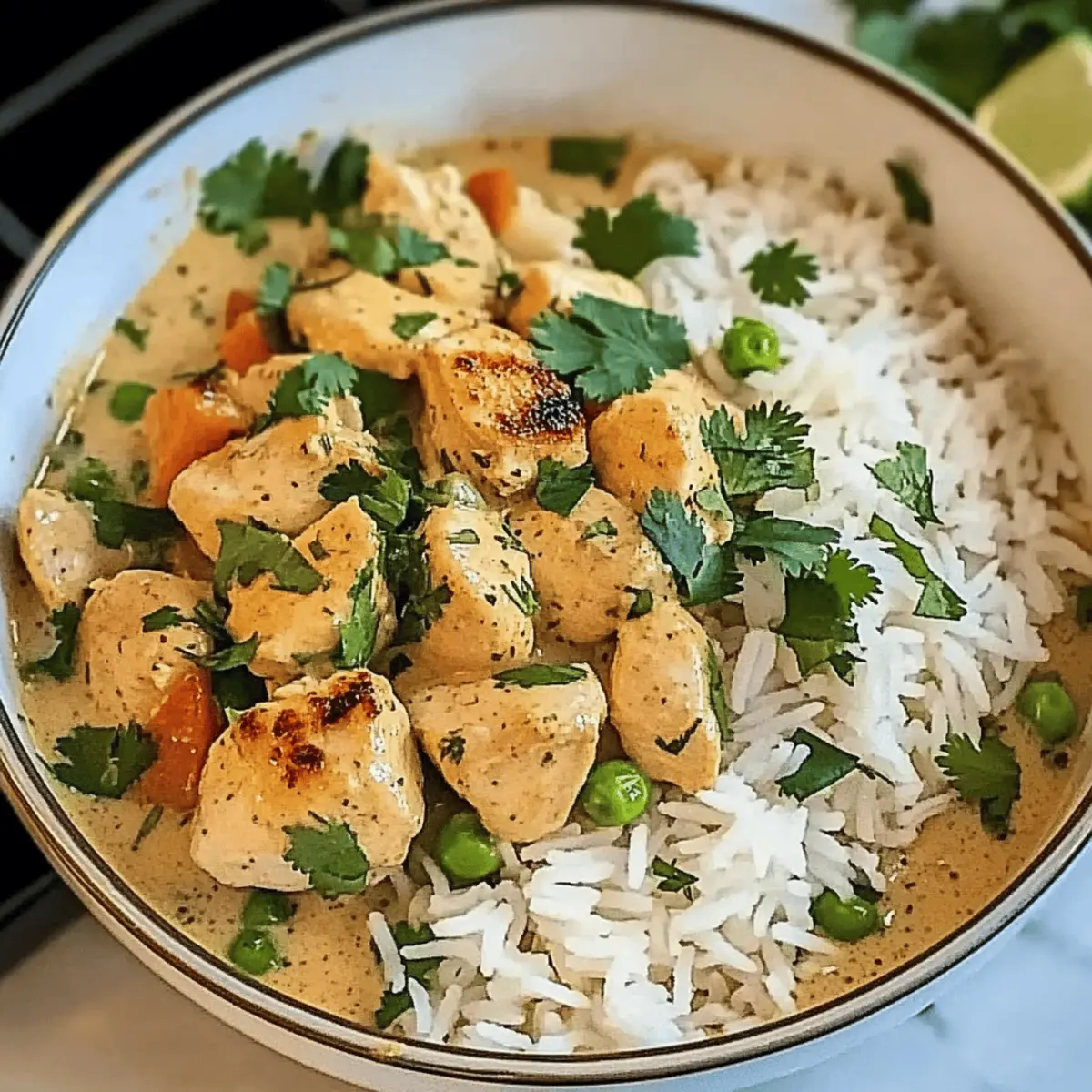 Creamy Comfort: This dish is a warm embrace on a plate, combining tender chicken with a luscious coconut sauce.