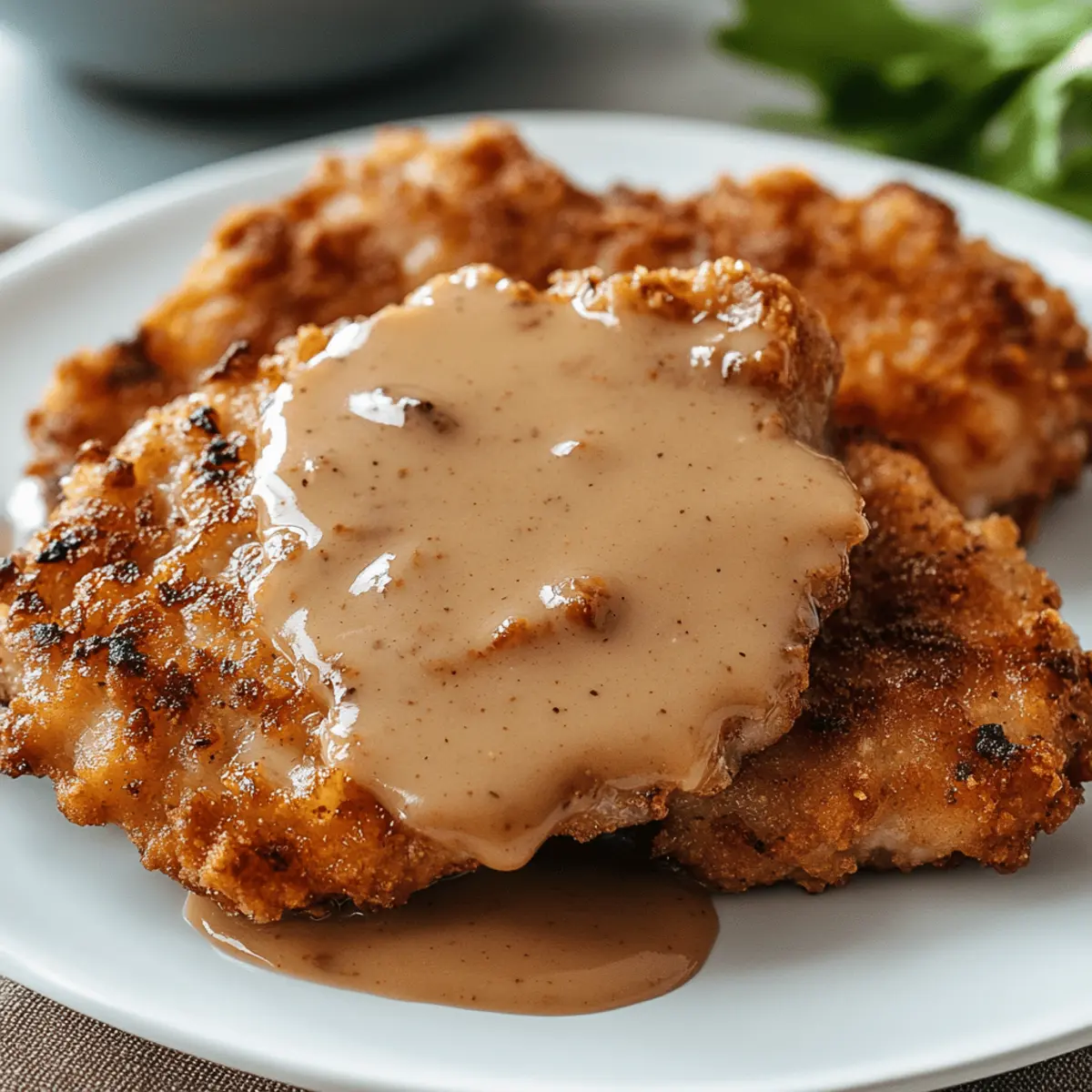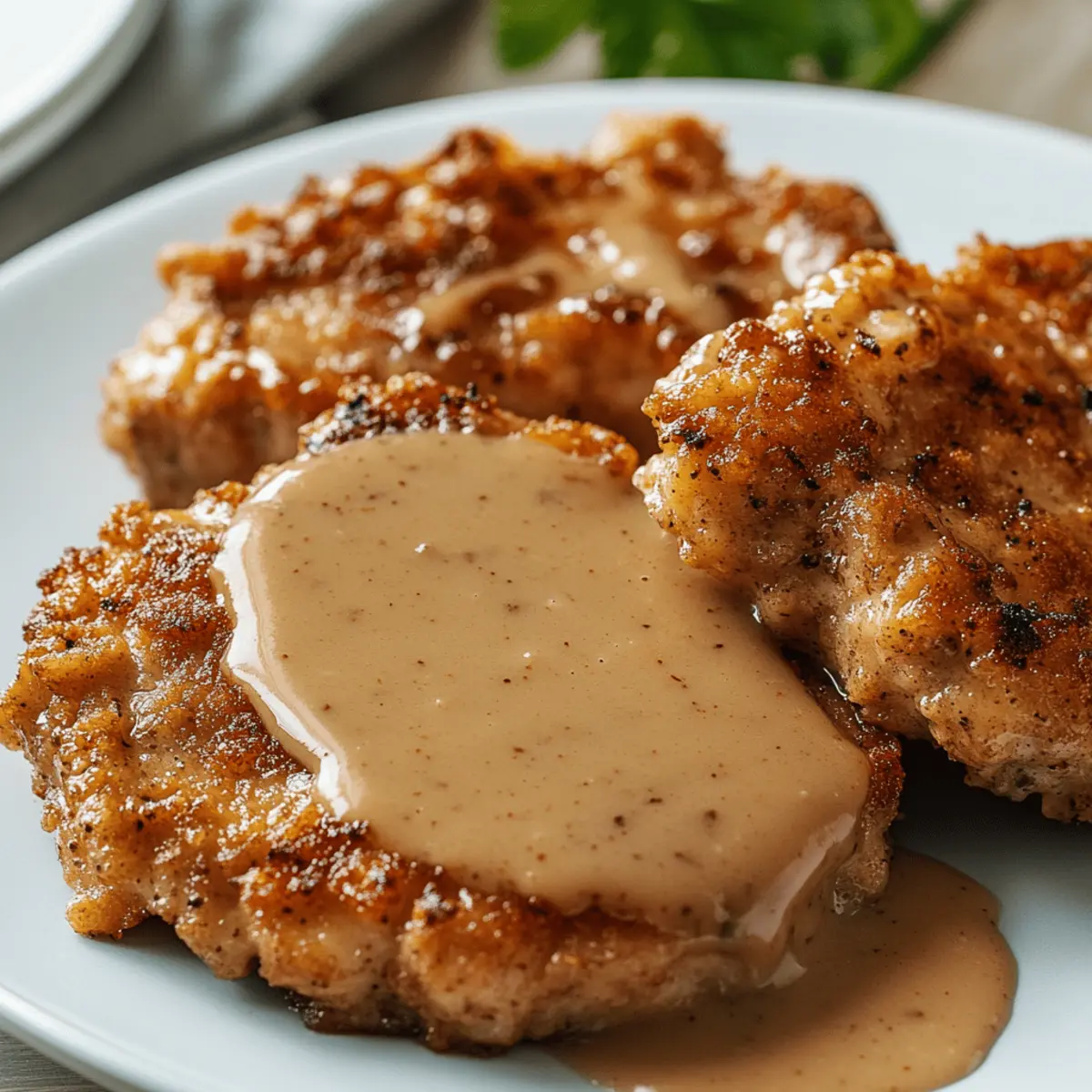 Once the pork chops are perfectly fried, remove them from the skillet and let them rest. In the same pan, add the leftover flour from dredging and a splash of milk to the drippings. Whisk continuously over medium heat until the mixture thickens, creating a smooth, creamy gravy that will complement your Country Fried Pork Chops beautifully.