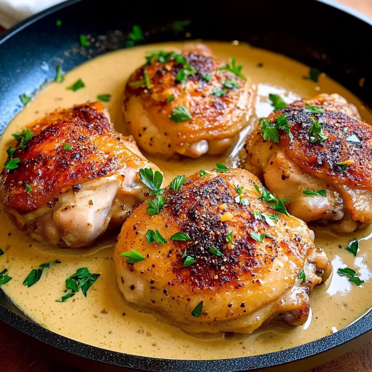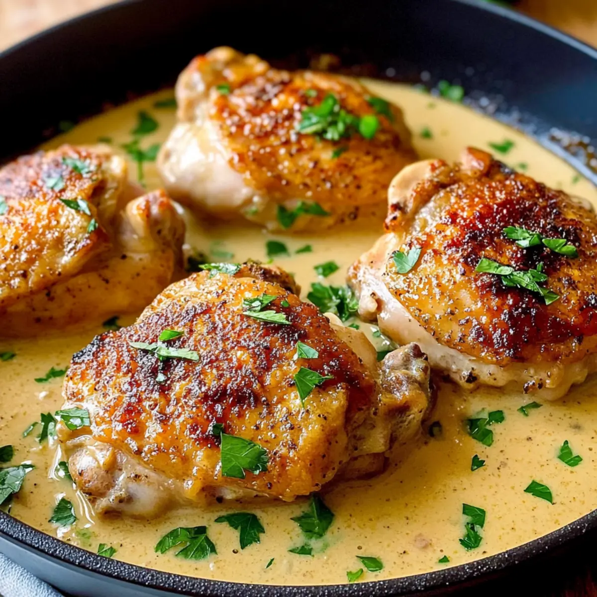 Transfer the skillet to your preheated oven and braise the chicken uncovered for about 15 minutes. The goal is to cook the chicken until it reaches an internal temperature of 165°F (74°C), resulting in perfectly tender and succulent thighs that soak up the decadent sauce.