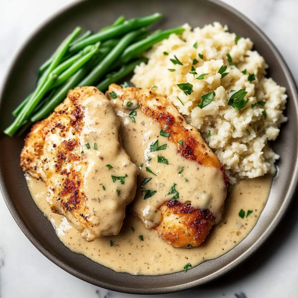 • Creamy Mashed Potatoes: Their smooth, buttery consistency mirrors the sauce and offers a hearty texture that’s simply irresistible alongside the chicken.