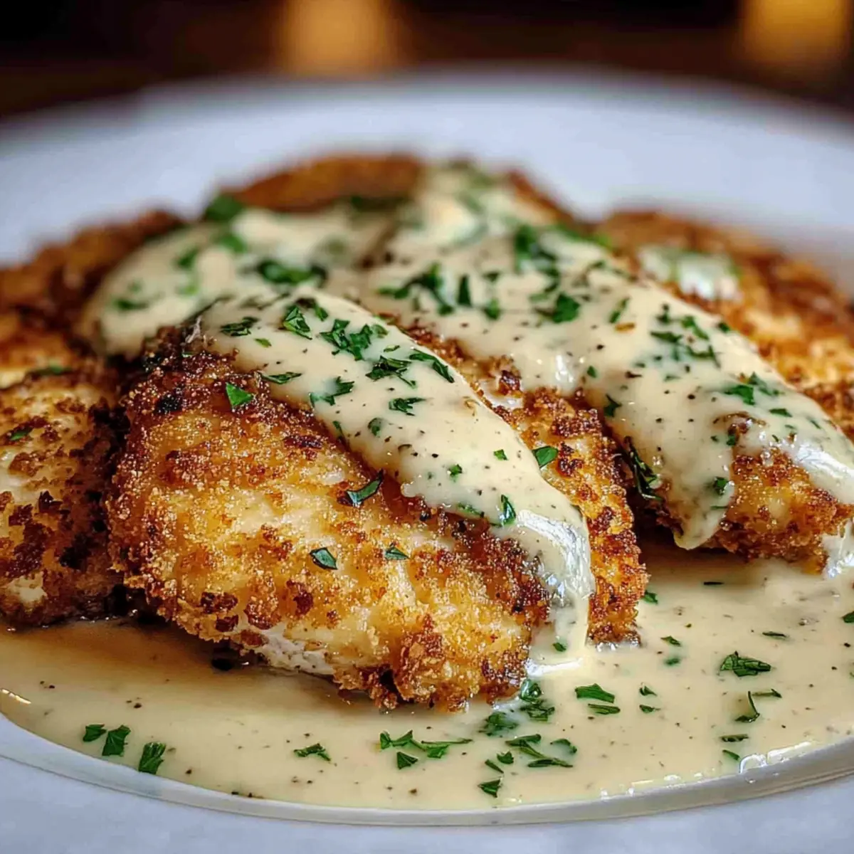 Reheating: To reheat, place the chicken in a preheated oven at 350°F (175°C) for about 10–15 minutes. This will help keep the crust crispy while heating the creamy garlic sauce gently on the stovetop.