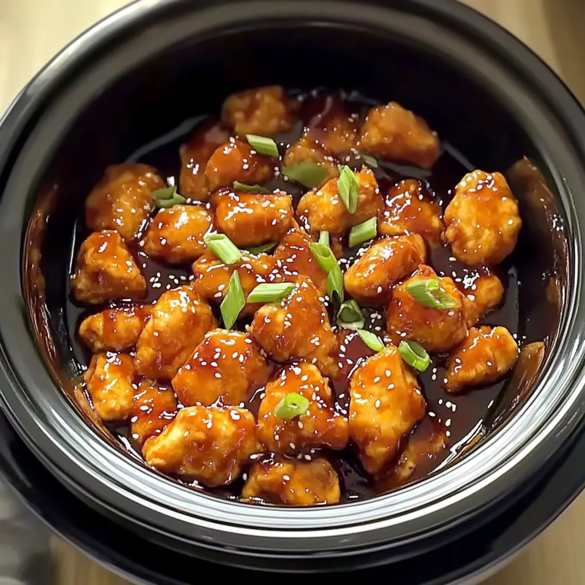 Once the cooking time is complete and the chicken is tender and cooked through, carefully ladle the orange chicken over steamed rice or your choice of base. Garnish with additional sesame seeds and chopped scallions for a fresh and crunchy finish before serving, bringing to life your delicious Irresistible Crockpot Orange Chicken!