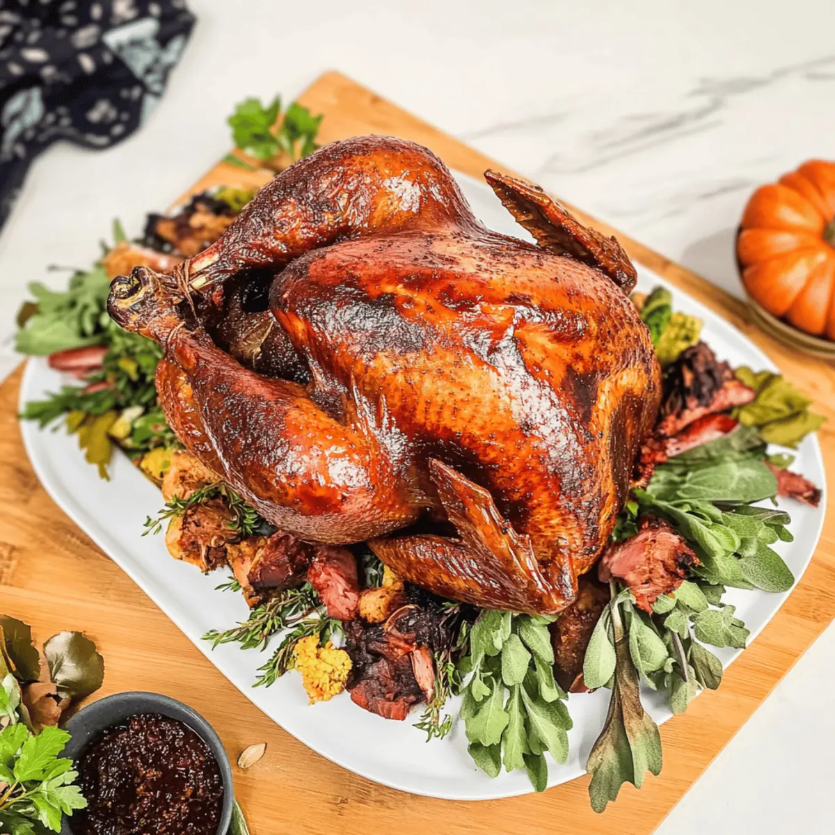 Brined Turkey: Brine your turkey overnight in a saltwater solution to enhance moisture and flavor, making every bite unforgettable.