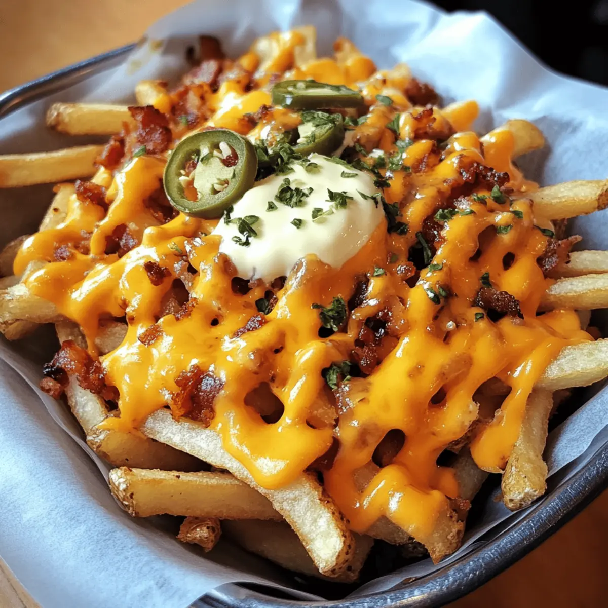 As I pulled a tray of golden fries from the oven, the enticing aroma swept through my kitchen, instantly promising comfort. These Loaded Dirty Fries aren’t just any side dish; they’re a mouthwatering blend of crispy potatoes draped in gooey cheddar, savory bacon, and a kick of jalapeño heat. Perfectly customizable, this recipe transforms a familiar favorite into a show-stopping party snack that’s sure to impress even the pickiest eaters. Whipping up these Dirty Fries takes minimal effort—ideal for spontaneous movie nights or feeding a crowd. Plus, the endless topping options let you tailor each bite to perfection. Curious about how to elevate your fries from ordinary to extraordinary? Let’s dive into crafting this delightful comfort food masterpiece together!