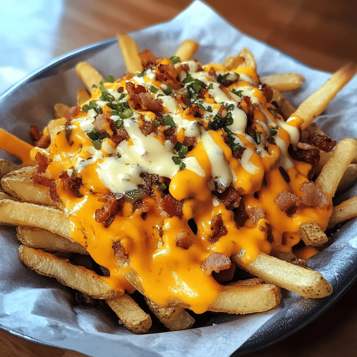 Fresh Avocado: Top with avocado slices or a sizeable scoop of guacamole for a rich and creamy finish that contrasts beautifully with the crispy fries.