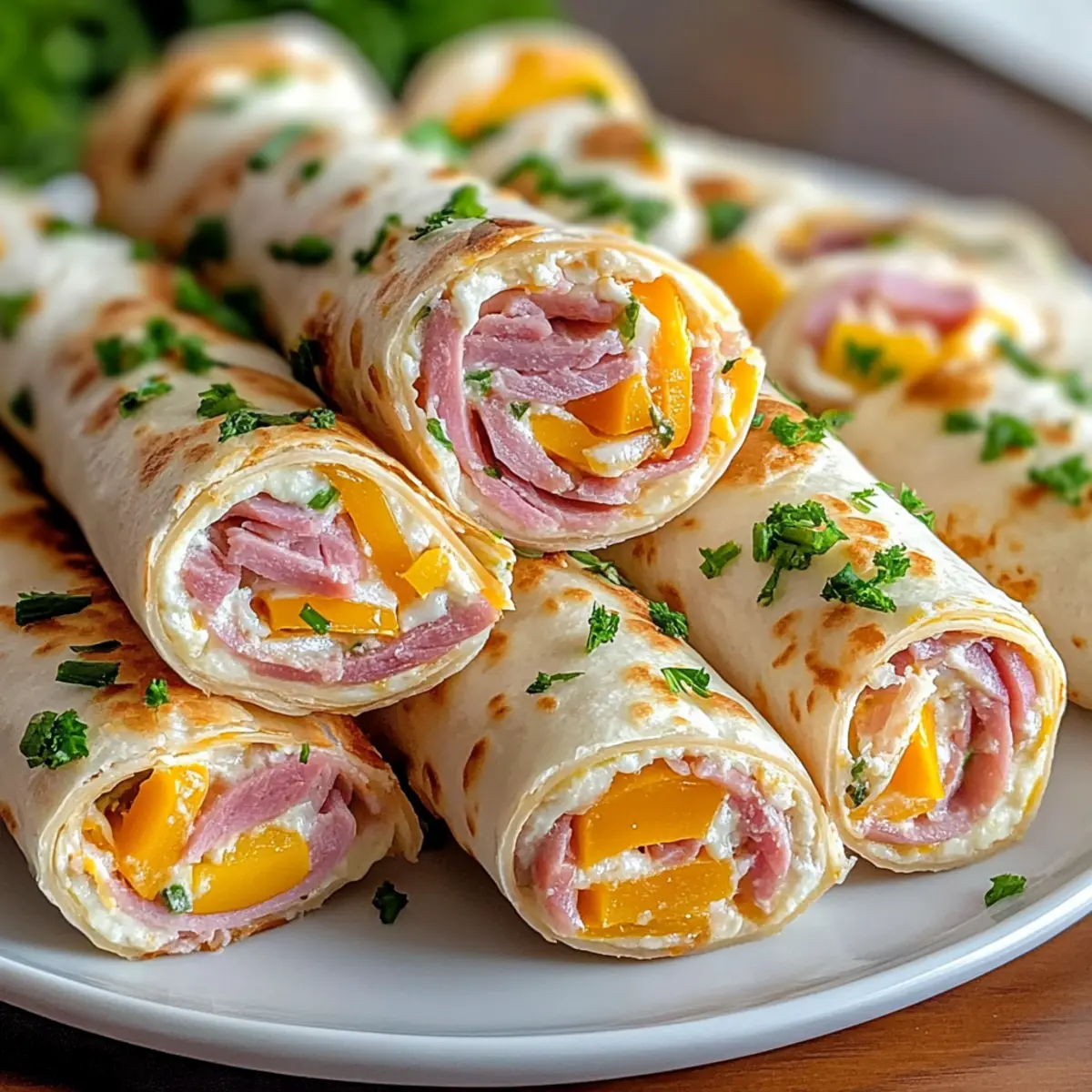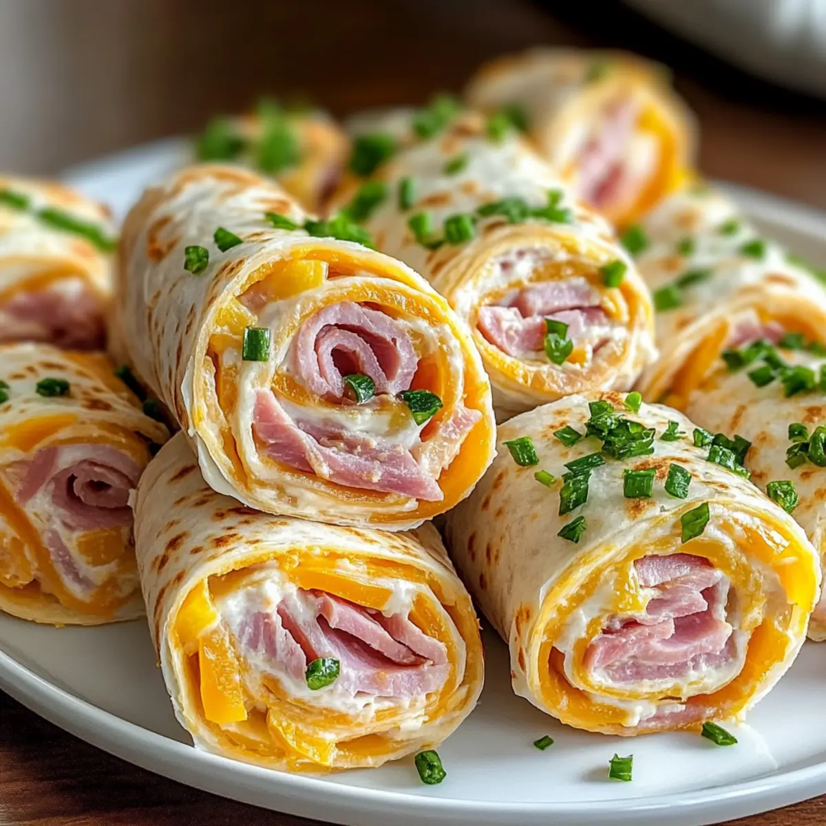 Reheating: Although these pinwheels are best served cold, you can briefly warm them in the microwave. Just a few seconds will do—enjoy the delightful combination of ham and cheddar as intended!