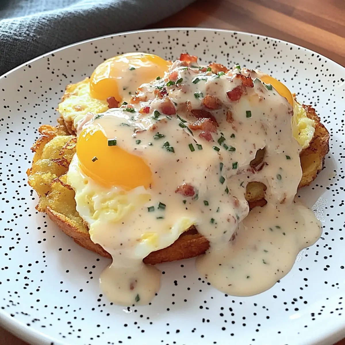 Step‑by‑Step Instructions for Egg Topped Hash Browns with Creamy Bacon Gravy