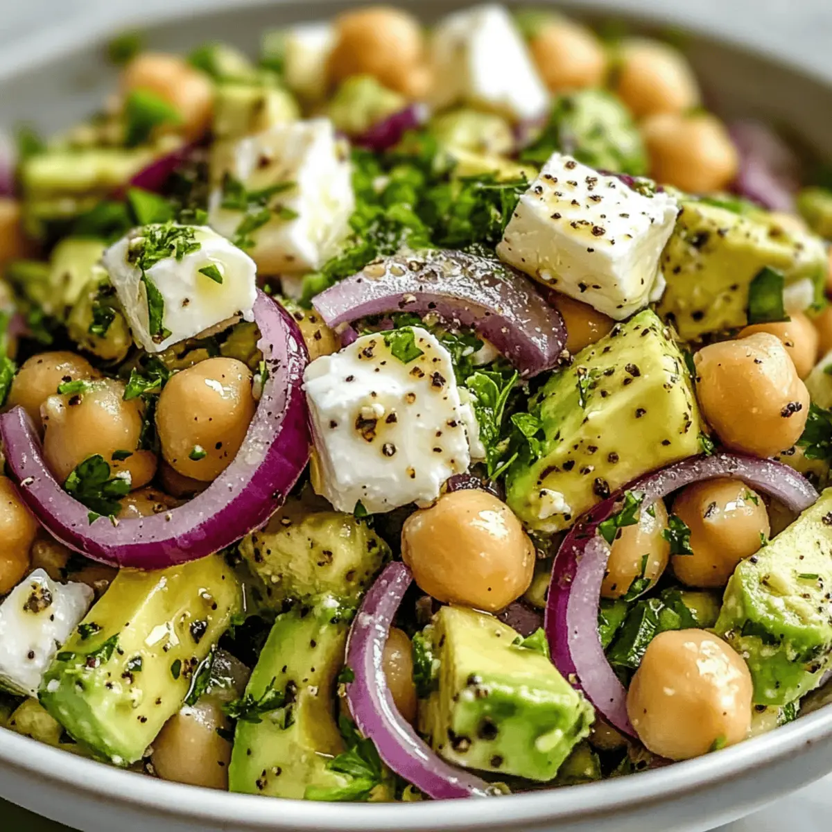 These Chickpea Feta Avocado Salad is a fantastic option for meal prep enthusiasts! You can prepare the chickpeas, feta, red onion, and herbs up to 3 days in advance; simply store them in an airtight container in the refrigerator. To prevent the avocado from browning, dice it and toss it with lemon juice just before serving. When you’re ready to enjoy this refreshing salad, combine the prepared ingredients with the dressing (made fresh for the best flavor) and gently toss to coat. This way, you’ll have a vibrant, nutritious meal ready in minutes, perfect for busy weeknights!