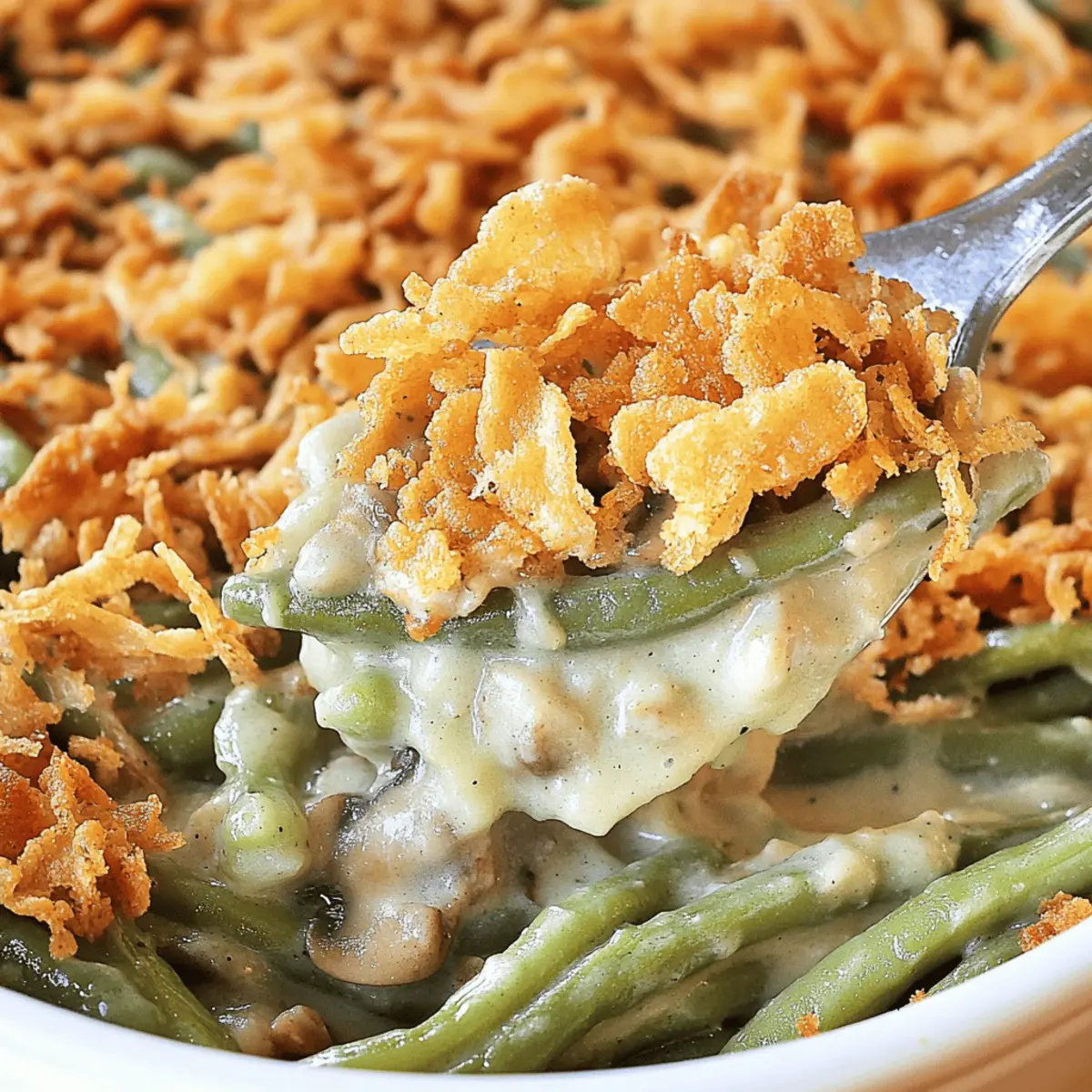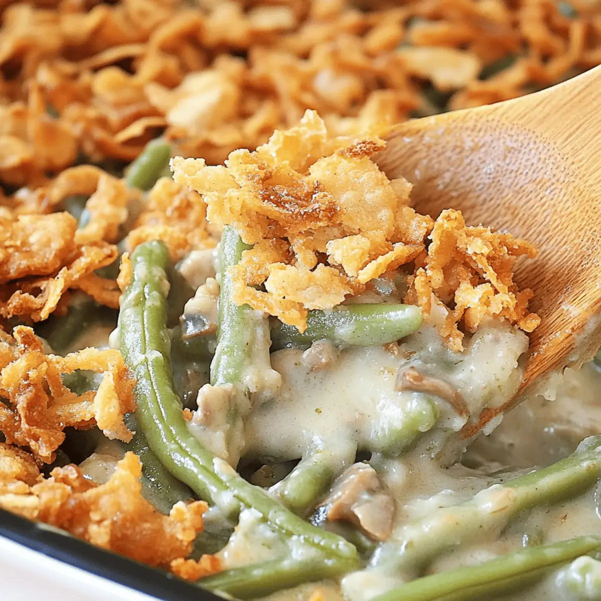 These Classic Green Bean Casserole preparations are perfect for busy home cooks looking to save time! You can assemble the casserole without the French fried onions up to 24 hours in advance; simply store it covered in the refrigerator to maintain freshness. The creamy mushroom sauce helps keep the green beans tender, ensuring the casserole is just as delicious when baked. When you’re ready to enjoy, bake the casserole as instructed, adding the crispy onions during the last 5 minutes of baking. This method not only saves you time on the day of your gathering but also allows for a stress-free serving—just pop it in the oven and let it do its magic!