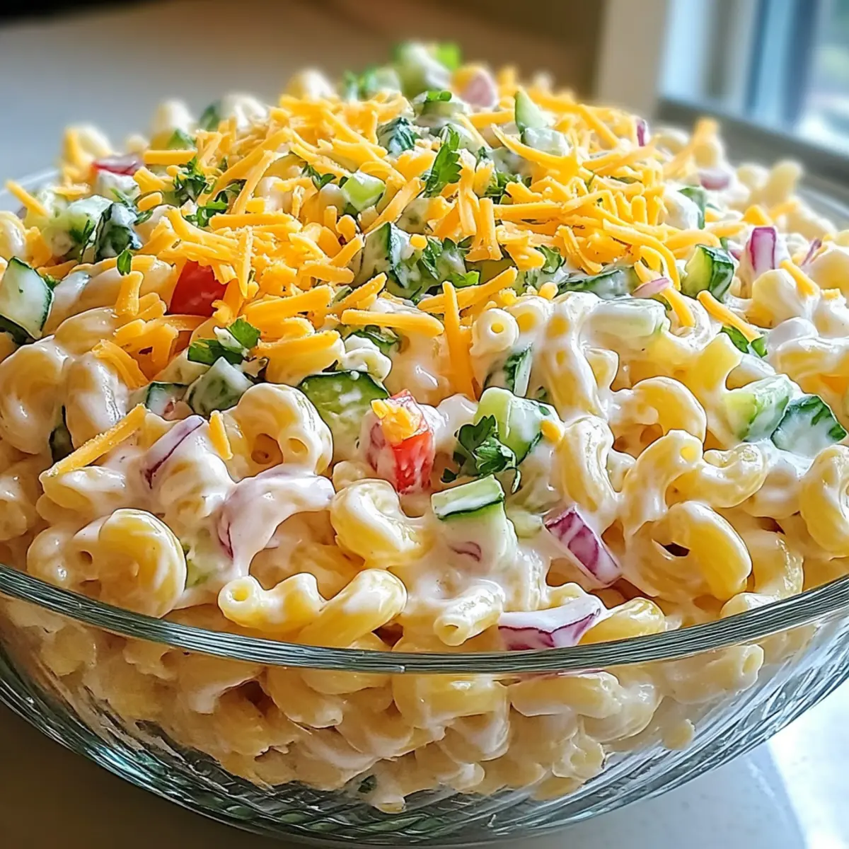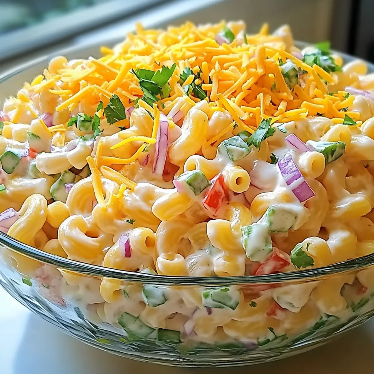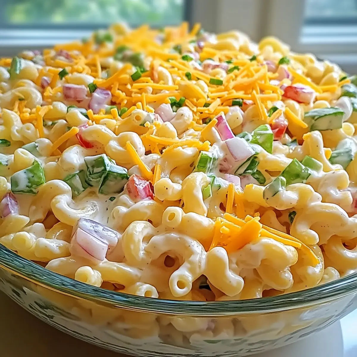 Crowd-Pleasing: With its vibrant colors and classic flavors, this macaroni salad is bound to be a hit at any barbecue, picnic, or potluck.