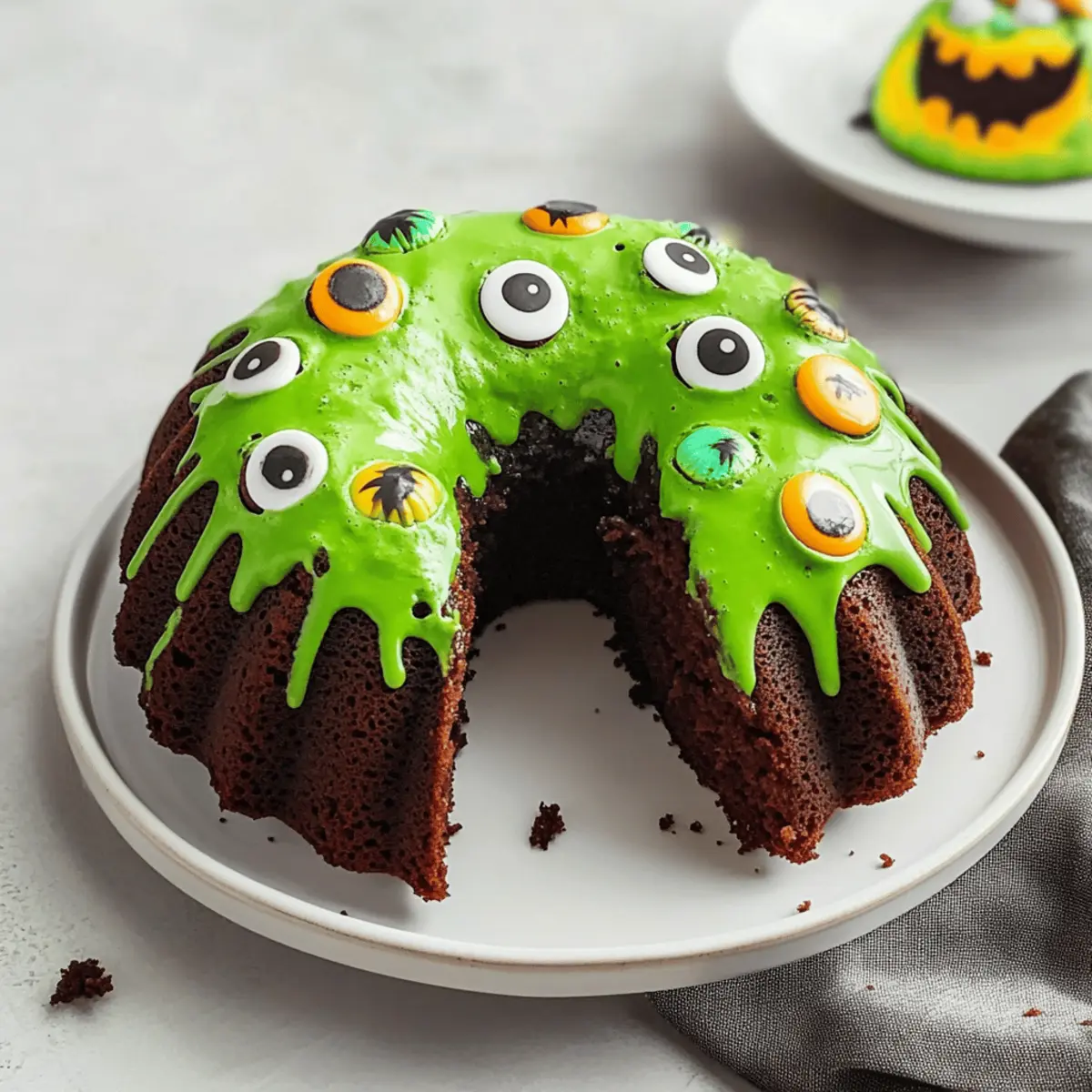 These Monster Halloween Bundt Cakes are perfect for meal prep enthusiasts! You can bake the cake up to 2 days in advance; just wrap it tightly in plastic wrap to maintain its moisture and freshness. The icing can be prepared up to 24 hours ahead and stored in the refrigerator in an airtight container—just give it a gentle stir before use, as it may thicken. When ready to serve, simply let the cake come to room temperature, ice it, and add your fun decorations. This way, you’ll have a stunning Halloween cake ready to impress your guests with minimal last-minute effort!