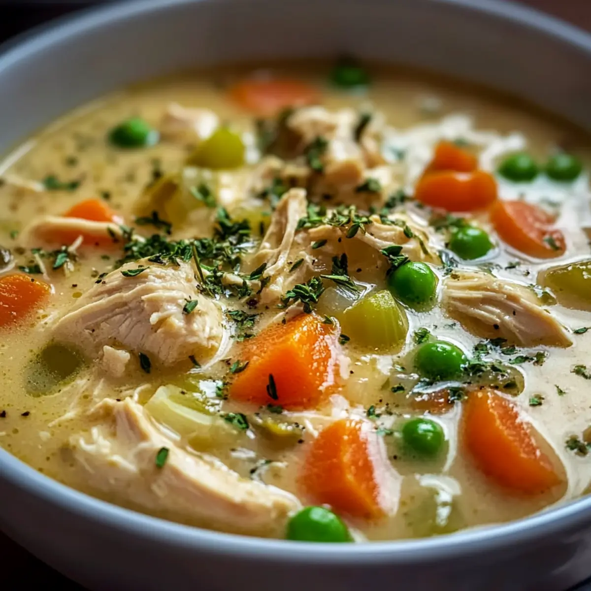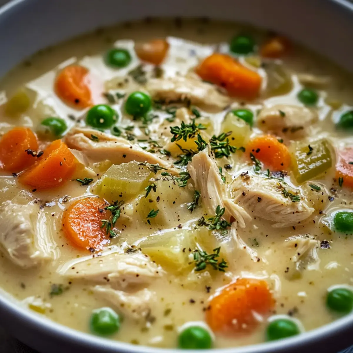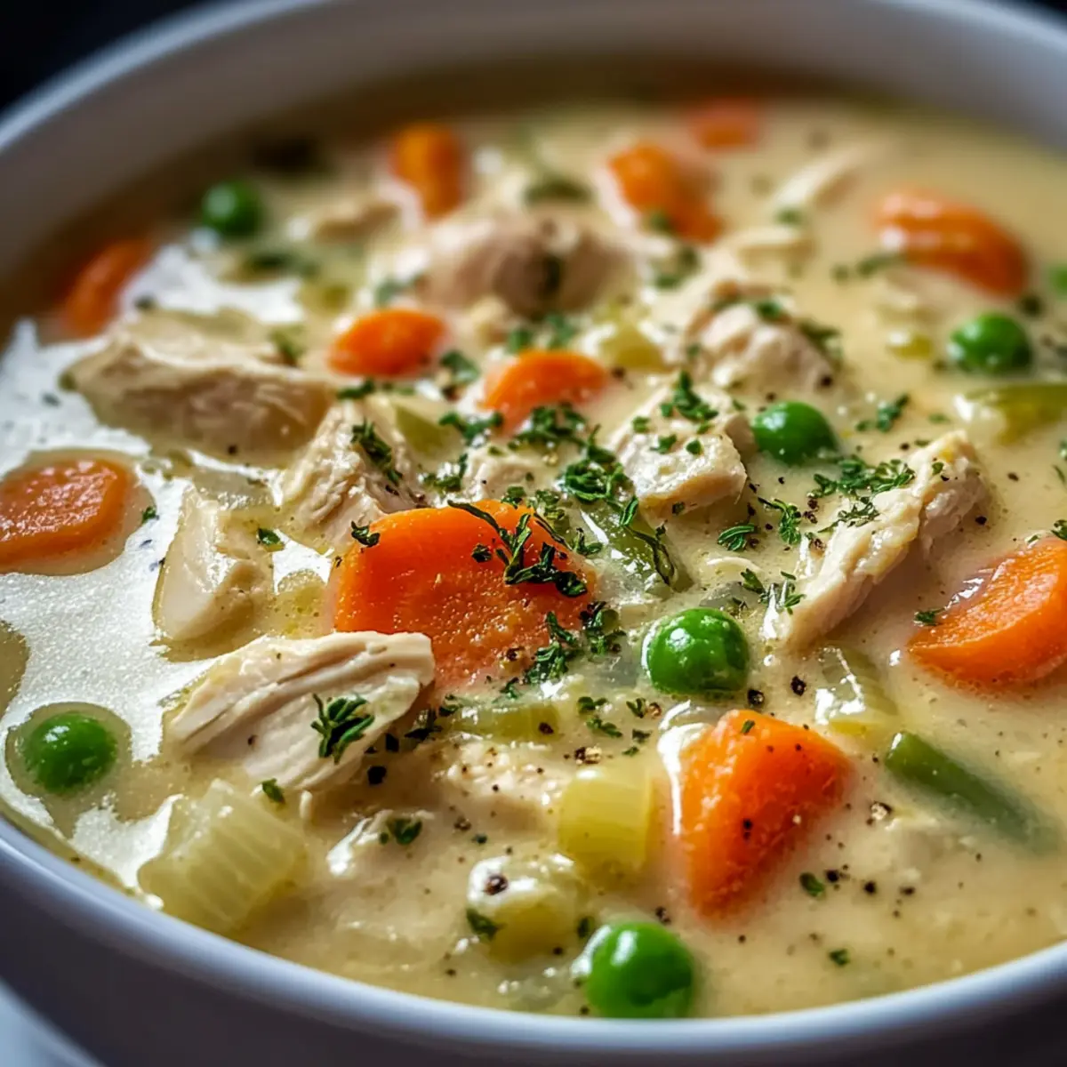 Comforting, this High Protein Chicken Pot Pie Soup redefines cozy dinners, delivering classic flavors in a modern, nutritious form. Customizable, you can easily swap in your favorite veggies or proteins, keeping it fresh and exciting every time. Quick to Prepare, it’s a delicious solution for busy weeknights looking for wholesome meals. Rich, Creamy Texture tantalizes your taste buds while ensuring everyone feels satisfied. Perfect to make-ahead, it’s easy to store and reheat, making it ideal for meal prep lovers. Indulge in this soup, and bring warmth and joy to your table!