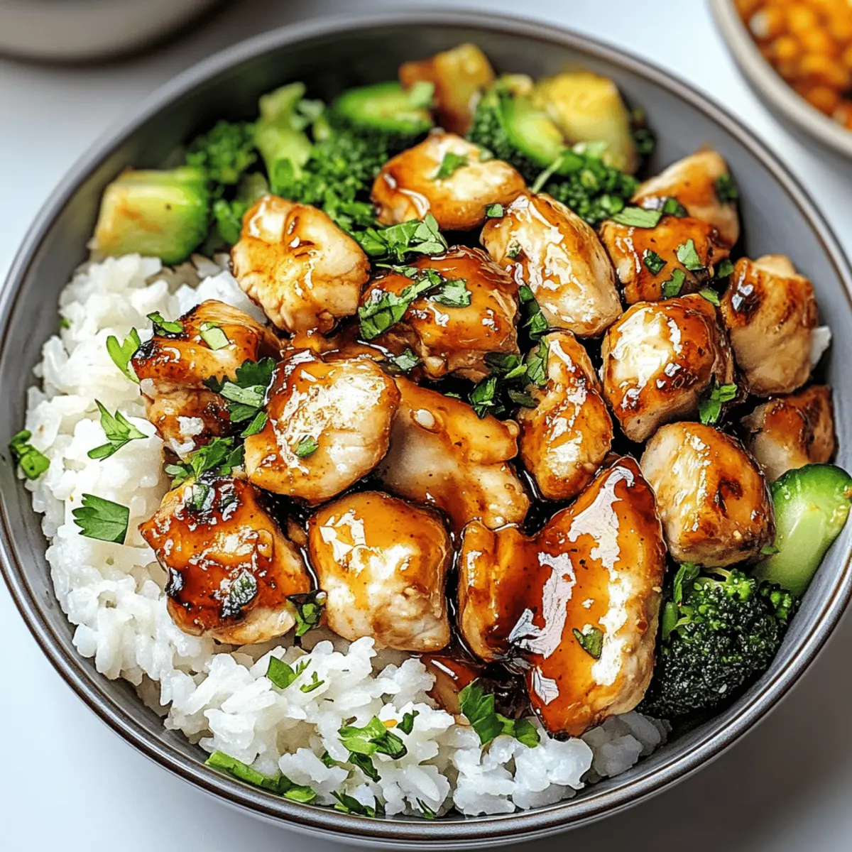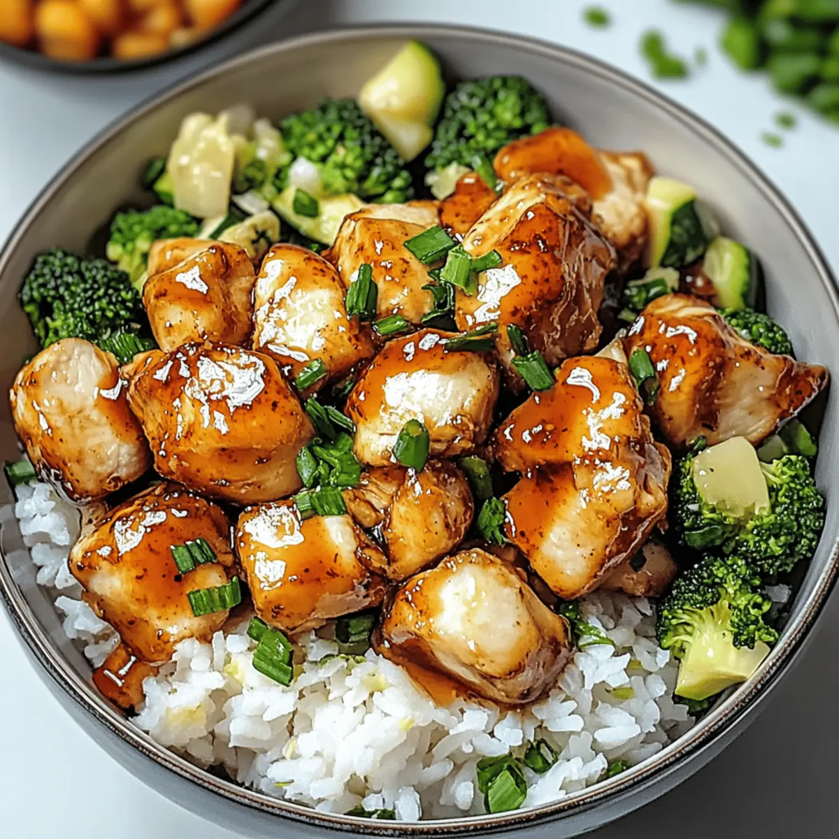 Prepare bowls by serving a generous scoop of rice or quinoa as the base. Place the seared chicken and sautéed vegetables on top, ensuring each bowl gets some of that delicious sauce. Garnish with a squeeze of fresh lime juice for an extra zesty finish!