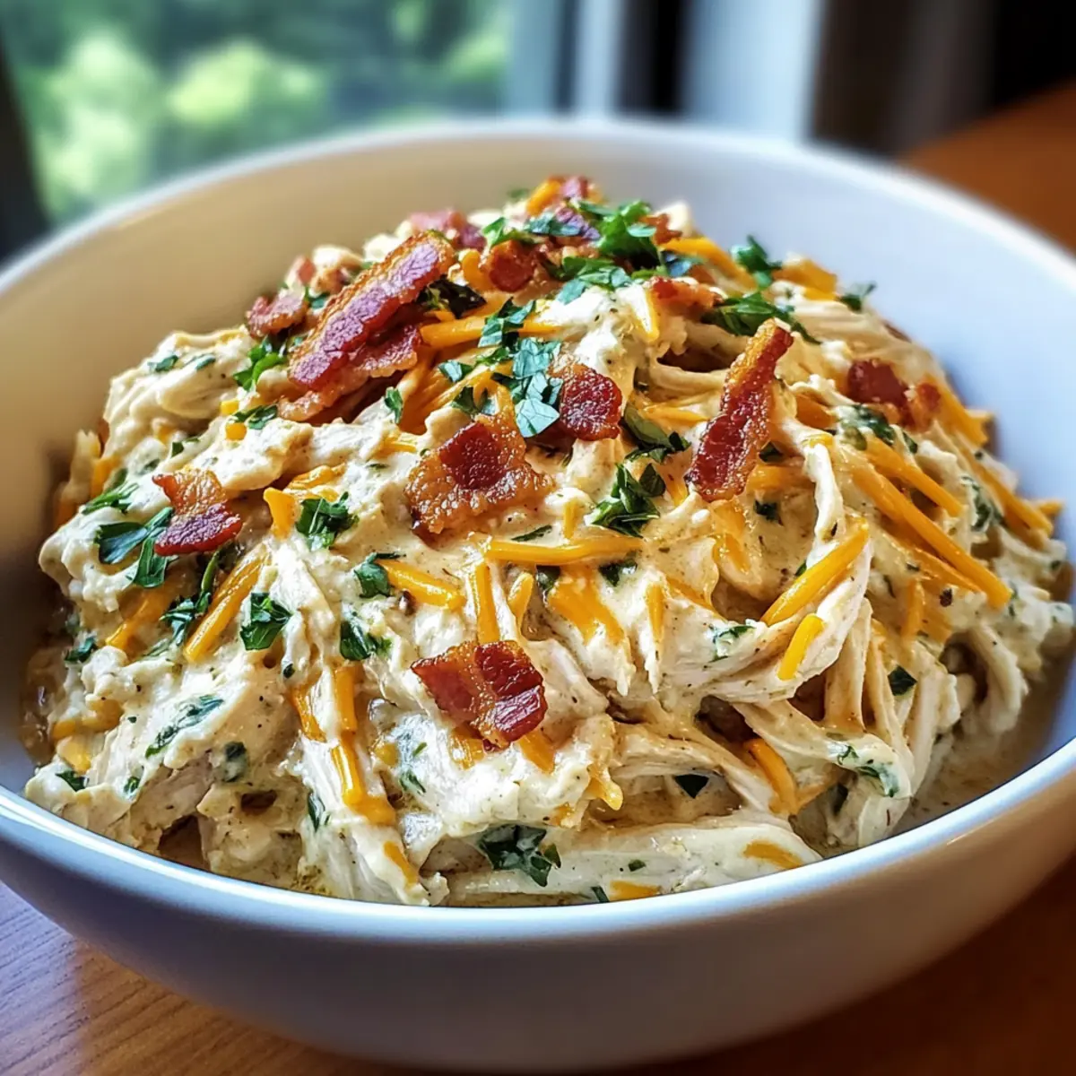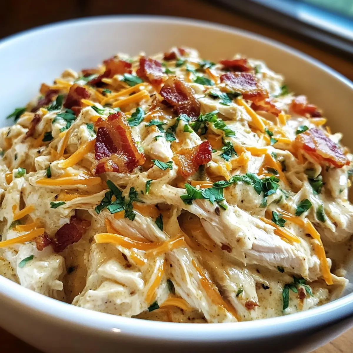 Once cooked, use two forks to shred the chicken directly in the crockpot, mixing it with the creamy sauce to create a beautiful harmony of flavors. If the mixture seems too thick, you can gradually stir in some chicken broth to reach your desired consistency. For an extra touch, sprinkle with reserved cheese and crispy bacon bits before serving.