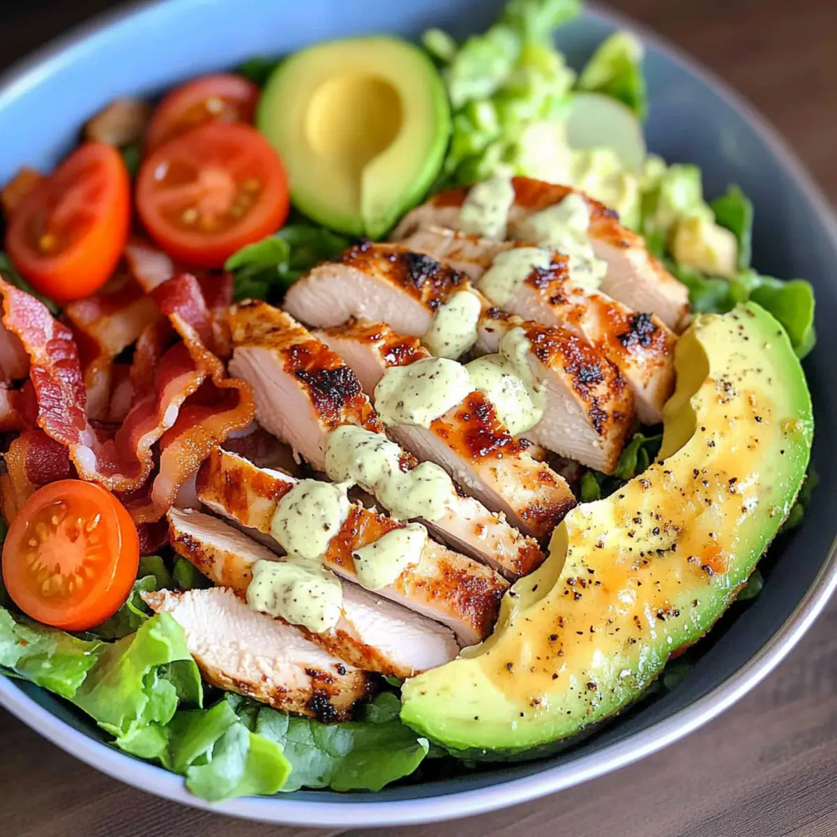 Finally, drizzle the homemade chipotle ranch dressing over the assembled salad. Use just enough to coat the ingredients lightly, enhancing their flavors without overwhelming them. Finish by seasoning your Low Carb Chicken Cobb Salad with salt and pepper to taste. Serve immediately, allowing everyone to dig into this delightful, carb-conscious feast!