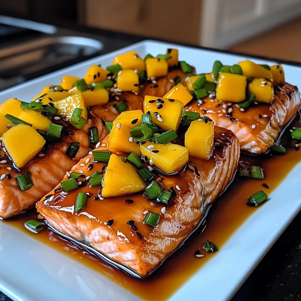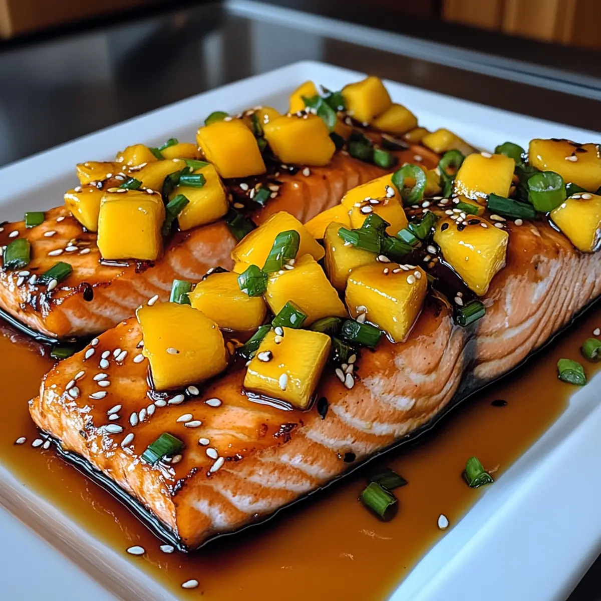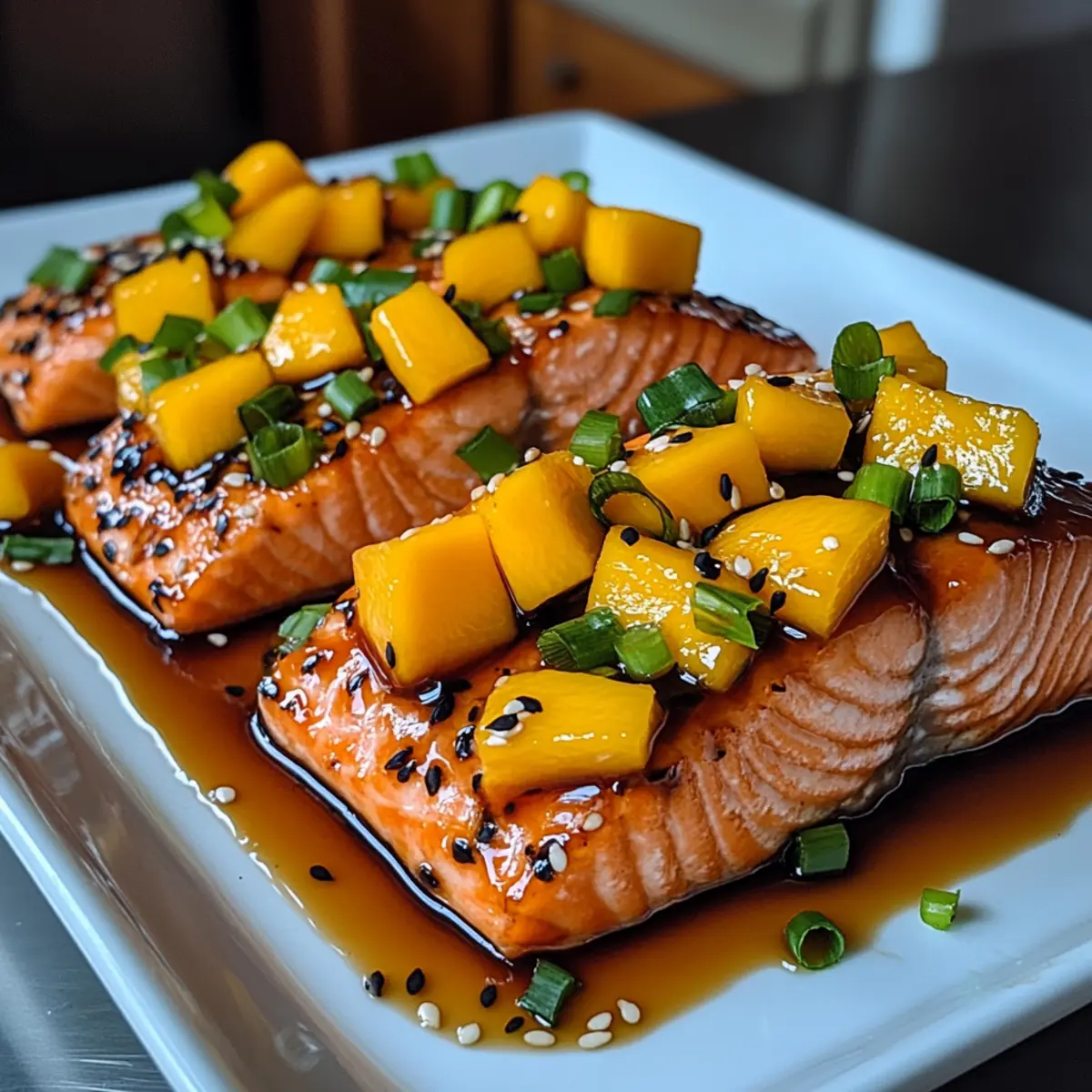 • Garnishing Matters: Fresh green onions and sesame seeds not only add flavor but also elevate the presentation of your mango teriyaki salmon.