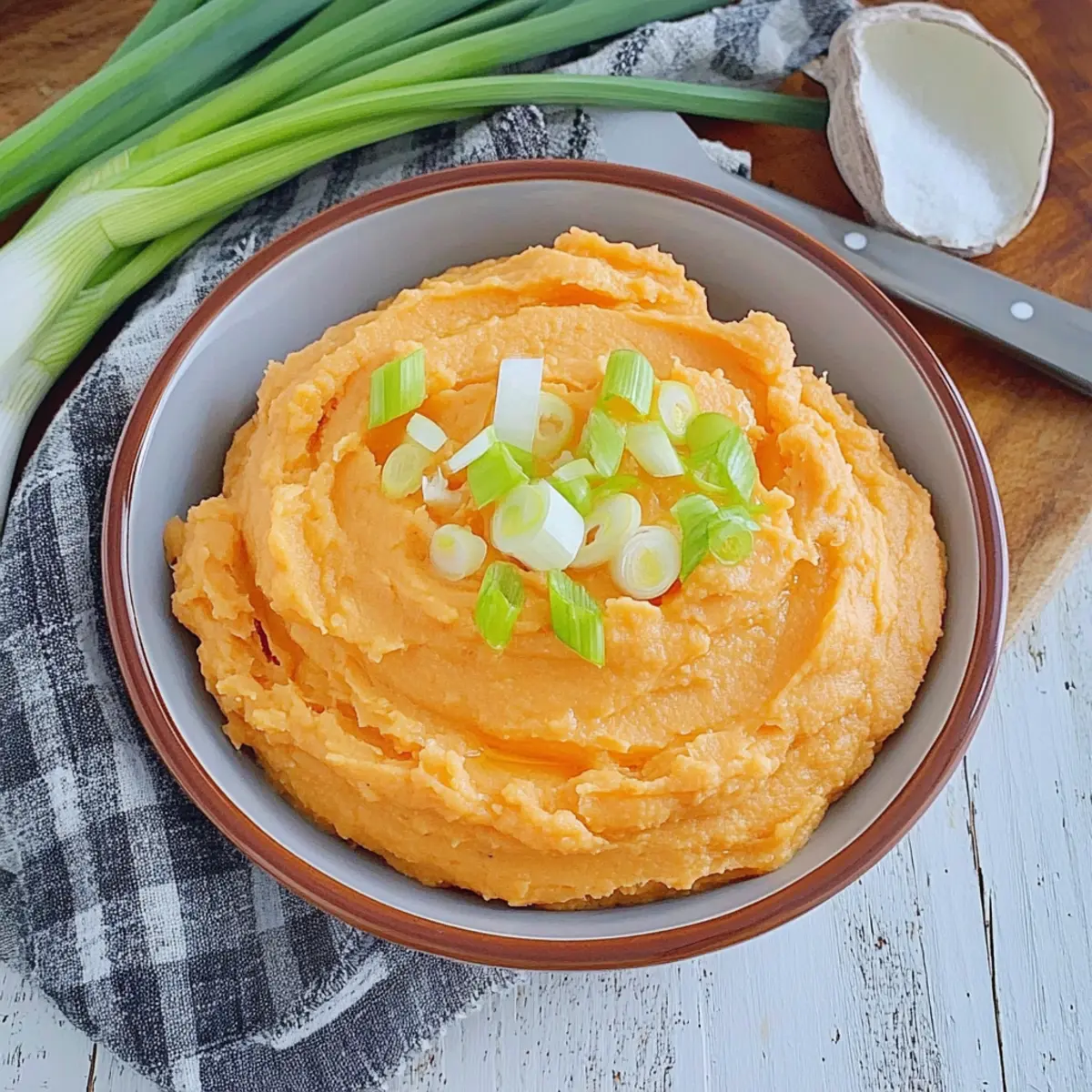Once your creamy mashed sweet potatoes are perfectly blended, transfer them to a serving dish. For an extra touch of flavor and presentation, consider garnishing with a dollop of sour cream or a sprinkle of sliced scallions. Serve immediately, allowing the vibrant flavors to shine and bring joy to your dining experience.