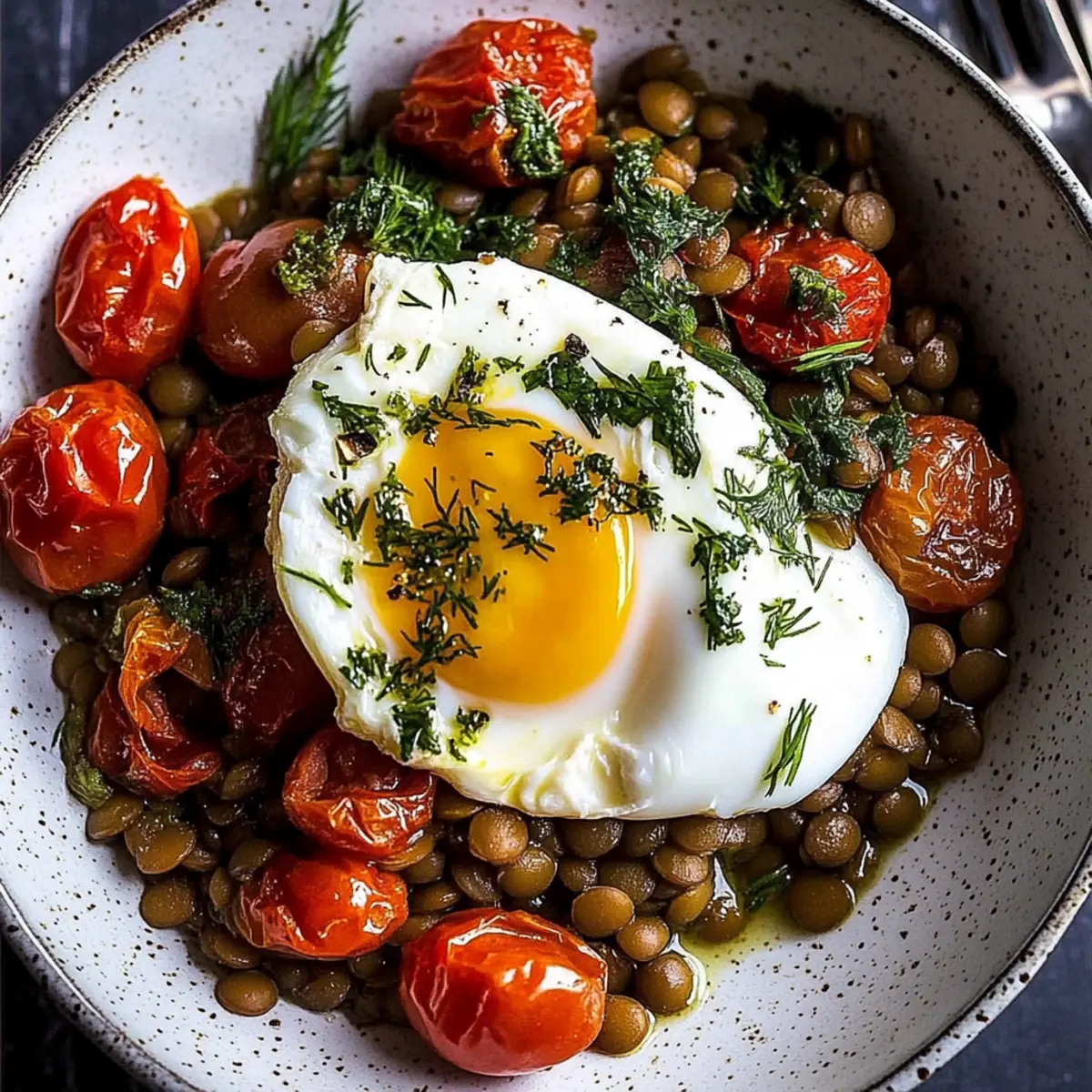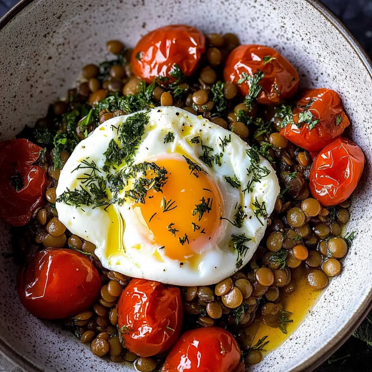 Mediterranean Braised Lentils with Poached Egg Bliss