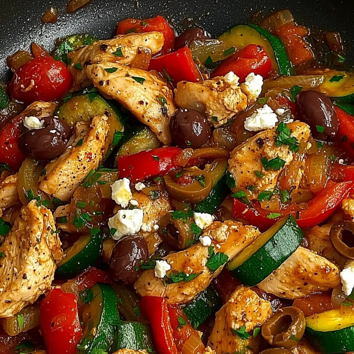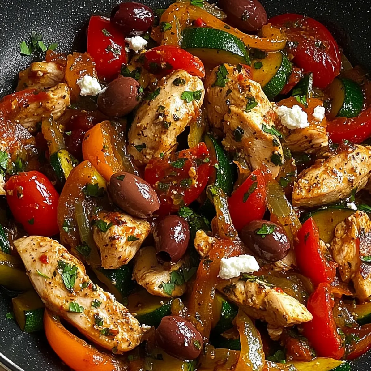 Very! For a vegetarian version, swap the chicken for tofu or chickpeas, which provide great protein content. For a vegan option, just omit the feta cheese or use a plant-based cheese alternative. Feel free to play around with seasonal vegetables to keep things exciting while staying true to a Mediterranean vibe!