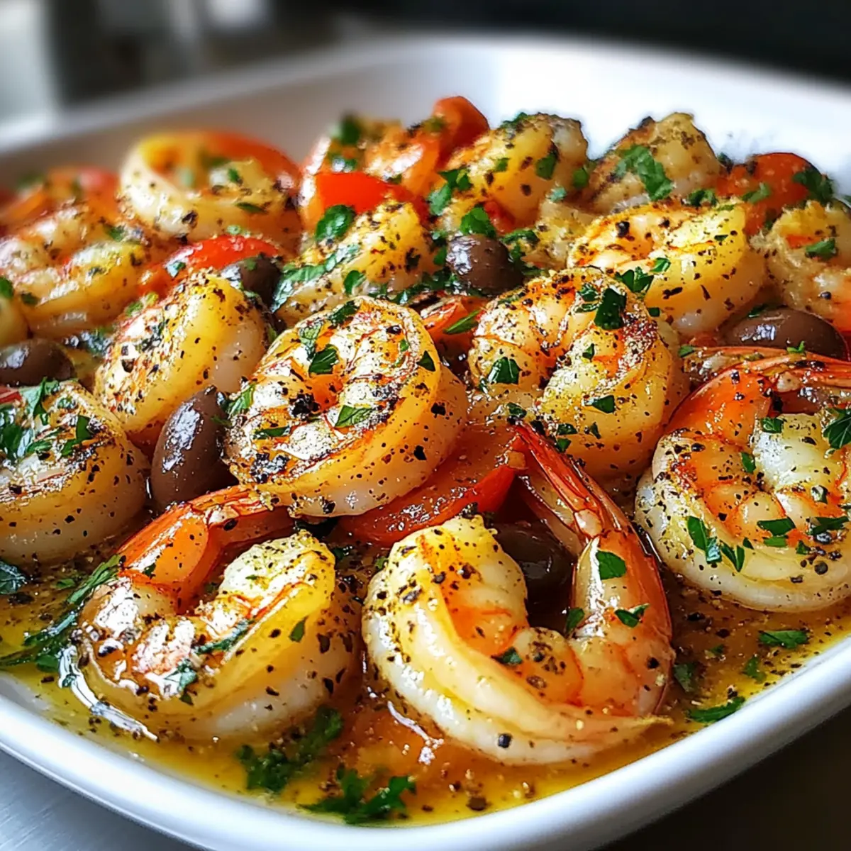 Gently incorporate 1 cup of halved cherry tomatoes and ½ cup of pitted Kalamata olives into the skillet, stirring carefully to combine. Cook for about 2-3 minutes, allowing the heat to soften the tomatoes, which should release their juices and create a lovely sauce base for your shrimp.