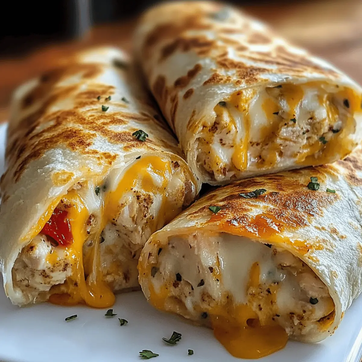 As a wave of divine aromas filled the kitchen, I couldn’t help but smile at the sight of my Cheesy Garlic Chicken Wraps sizzling away. The combination of tender chicken, rich garlic, and ooey-gooey cheese wrapped snugly in a soft tortilla creates an experience that transcends a simple meal. These wraps are not only a hearty delight but also customizable to fit whatever flavor mood strikes you. Whether you’re looking for a quick weeknight dinner or an impressive dish for weekend gatherings, they promise satisfaction with minimal fuss. Plus, you can easily adapt the ingredients to fit gluten-free diets or to use up what’s lurking in your fridge. Ready to see just how simple it is to whip up this comfort food favorite? Let’s dive in!