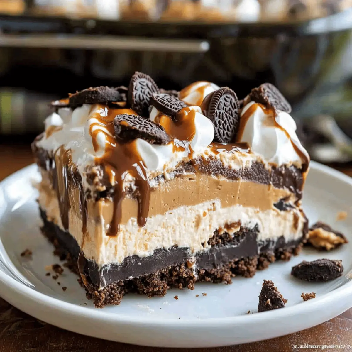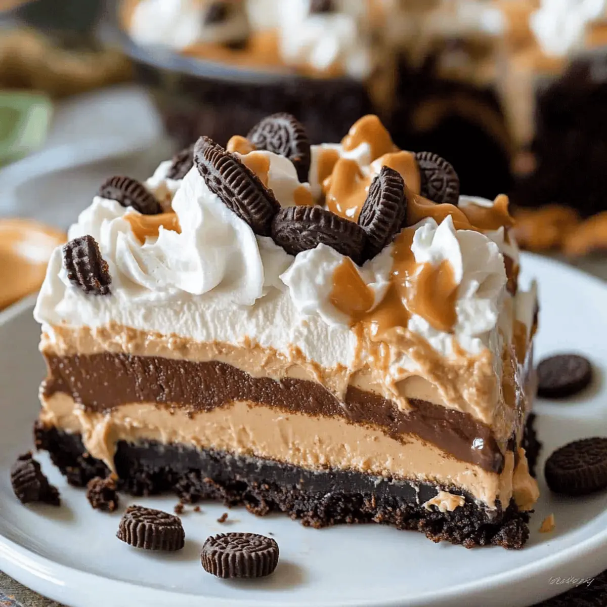 Decadent Layers: Indulge in the delightful contrast of creamy peanut butter and rich chocolate pudding, all beautifully layered over a crunchy Oreo base. This unique combination takes dessert to the next level!