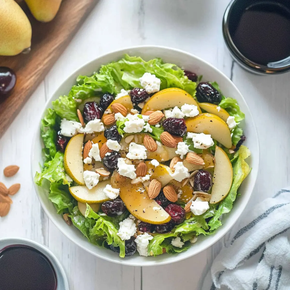 Enjoy a vibrant Pear Salad with Feta and Cranberries, perfect as a fall appetizer, combining sweetness and tartness for a delicious dish.