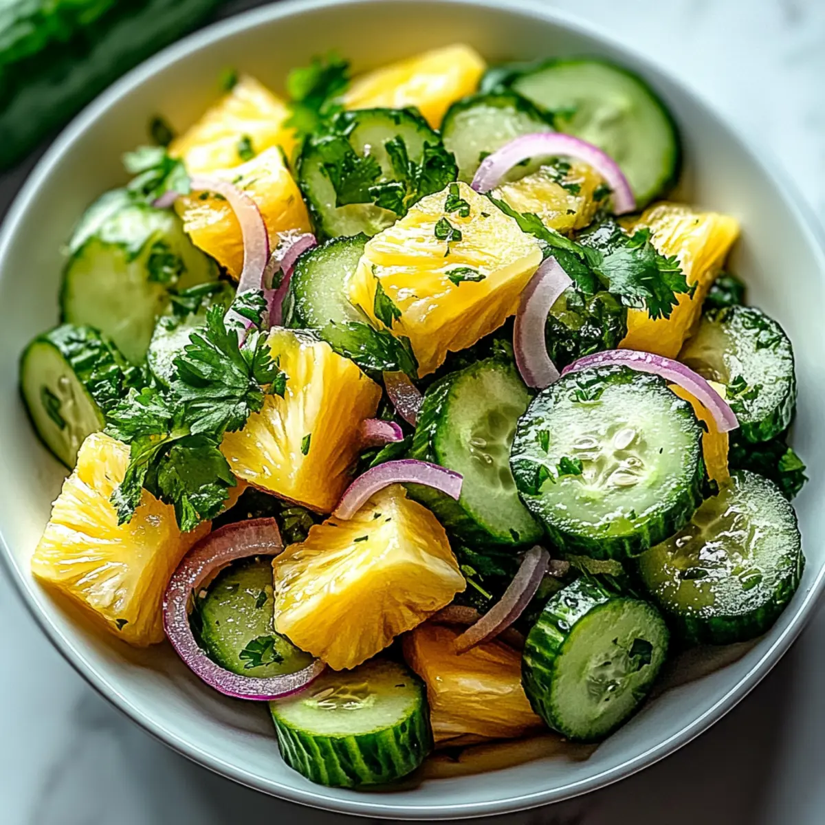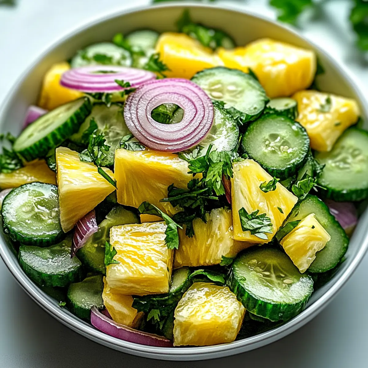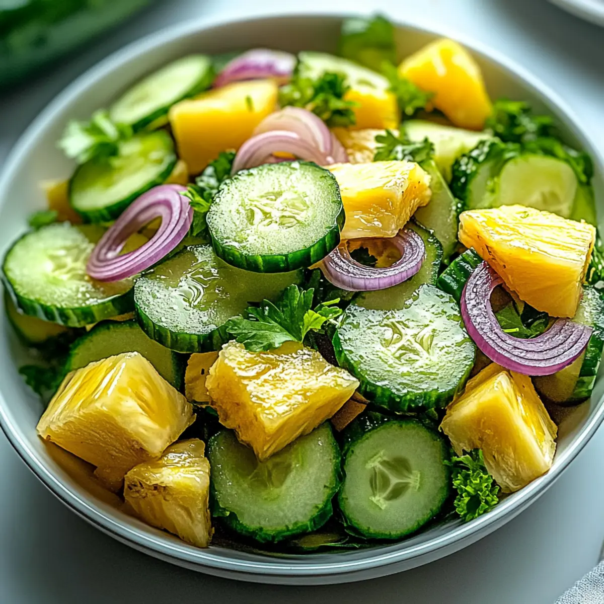 A refreshing pineapple cucumber salad perfect for summer gatherings, combining sweet pineapple, crisp cucumbers, and zesty lime dressing.