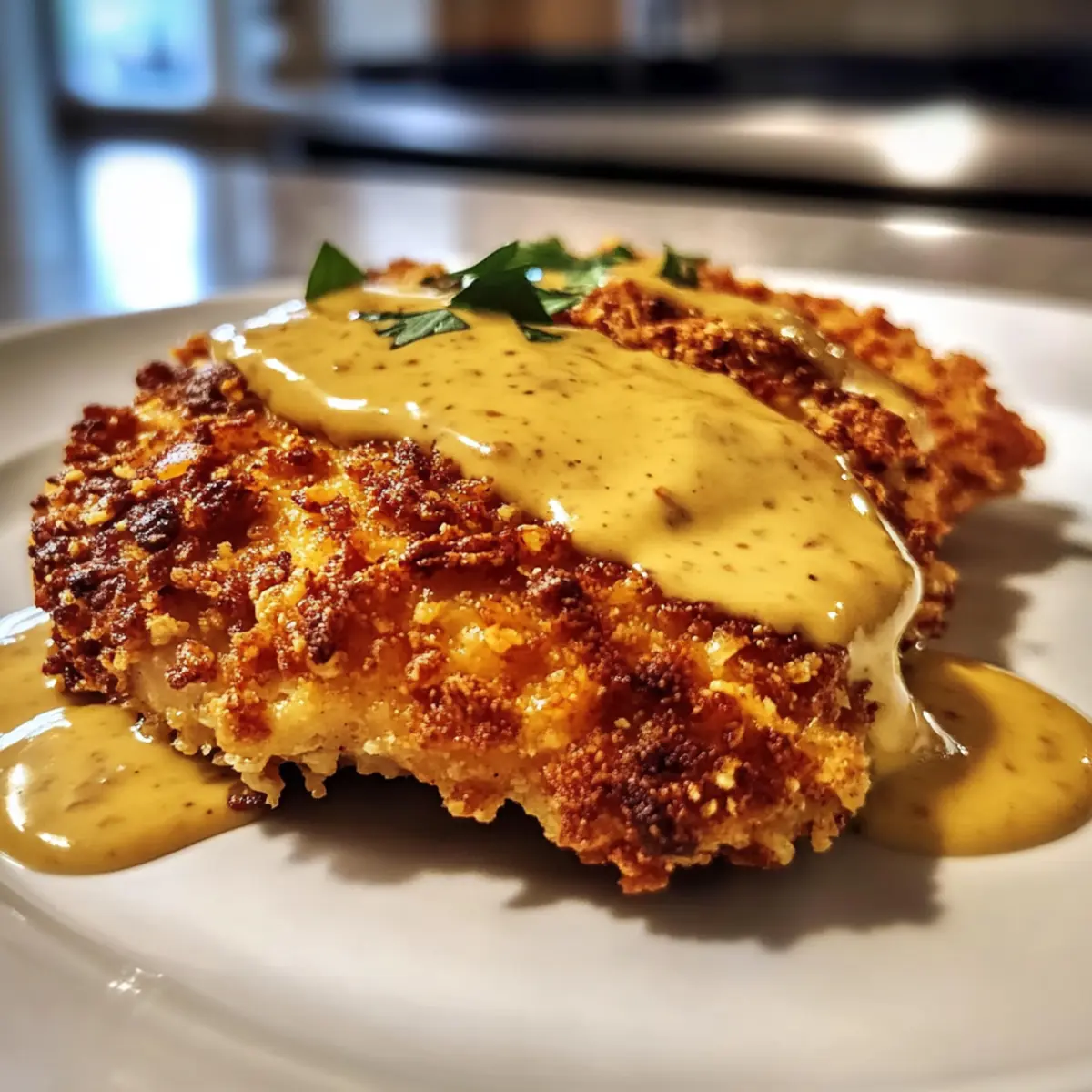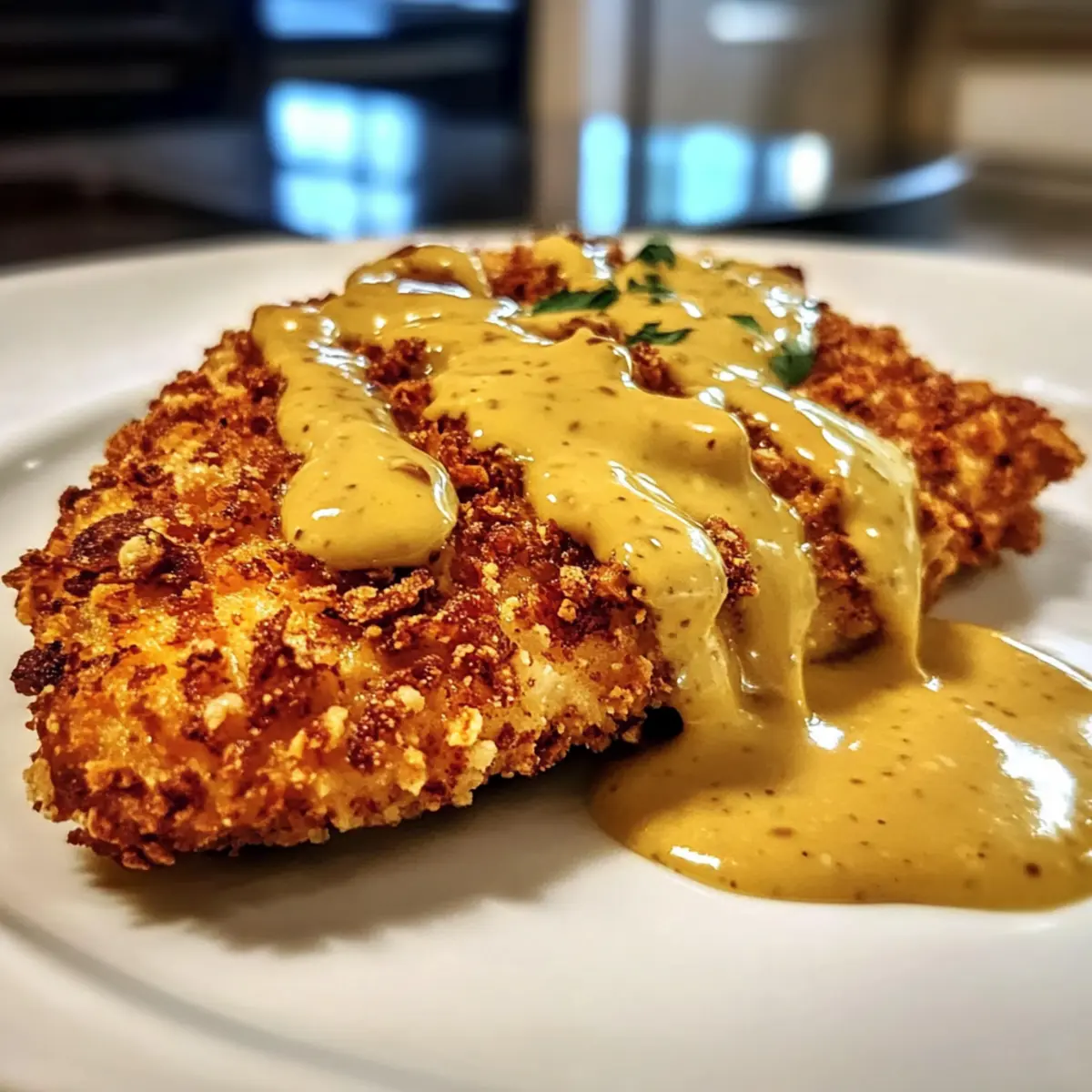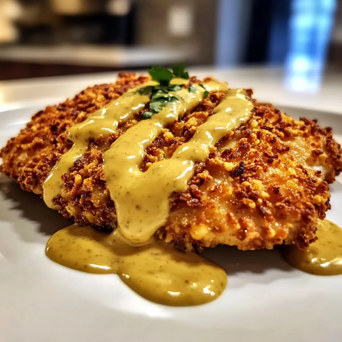 Enjoy the Crispy Pretzel Chicken with Mustard-Cheddar Sauce Delight, a perfect mix of indulgence and ease that transforms weeknight dinners into something special.