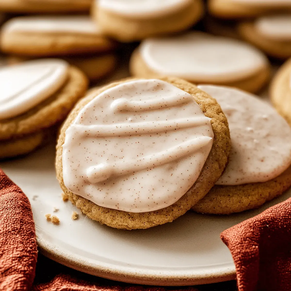 Making your icing is simple! Combine 1 cup of powdered sugar, 1 teaspoon of pumpkin pie spice, and enough warm water to reach your desired consistency. Start with 1 tablespoon and mix until smooth, adjusting gradually. Once your cookies have cooled completely, use a piping bag or a knife to spread or drizzle the icing on top for a lovely finish!