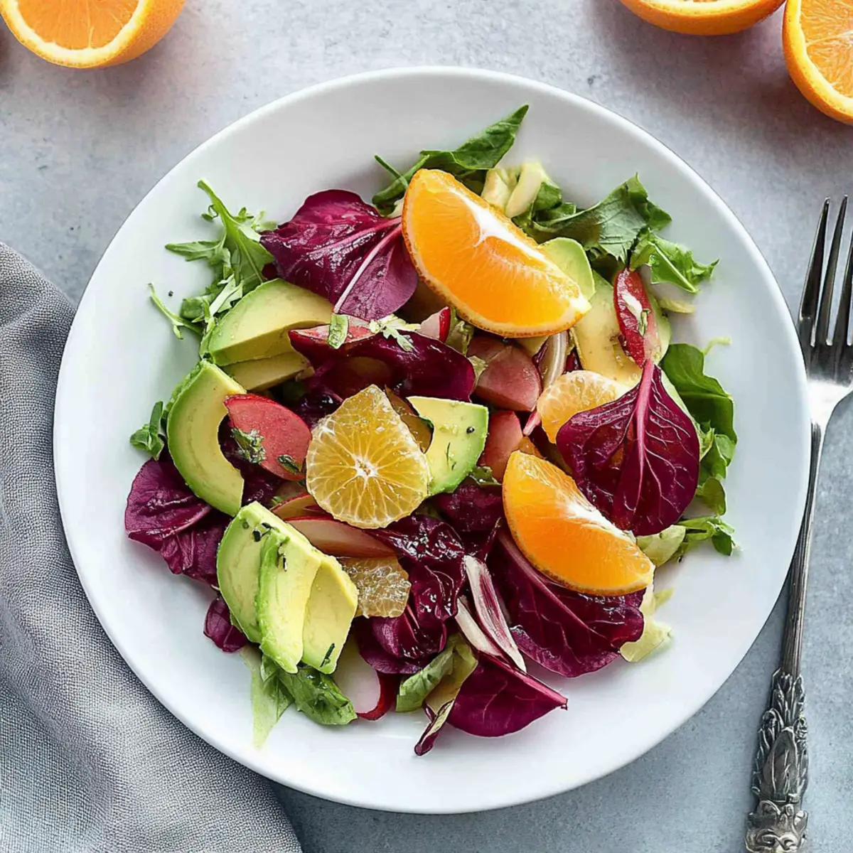 If you prefer to adjust ingredients, consider swapping radicchio for arugula or mixed greens for a milder flavor. For the vinaigrette, use any citrus juice you love! Trying tangerines, grapefruits, or even adding nuts or seeds like almonds or sunflower seeds can add delightful layers to your Radicchio Salad with Citrus Vinaigrette.