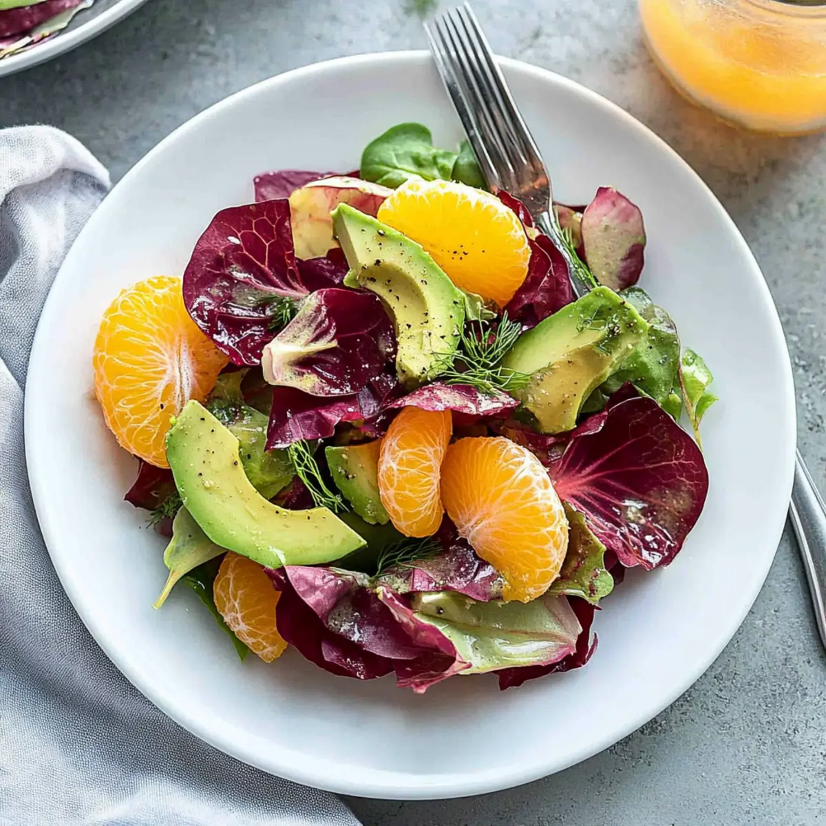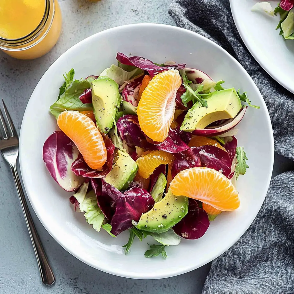 These Radicchio Salad with Citrus Vinaigrette components are perfect for meal prep! You can wash and chop the radicchio, slice the fennel, and segment the oranges up to 24 hours in advance, storing them in airtight containers in the refrigerator to keep them fresh. For optimal quality, prepare the citrus vinaigrette separately and refrigerate it as well. However, it’s best to add the diced avocado just before serving to prevent browning. When you’re ready to enjoy the salad, simply combine all the prepped ingredients, toss them with the dressing, and savor the vibrant flavors with minimal effort. This way, you can whip up an impressive dish for busy weeknights or gatherings!
