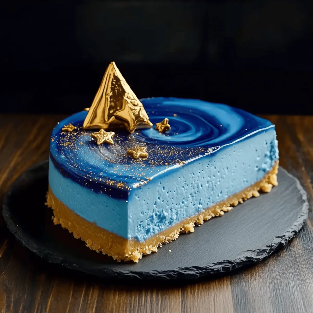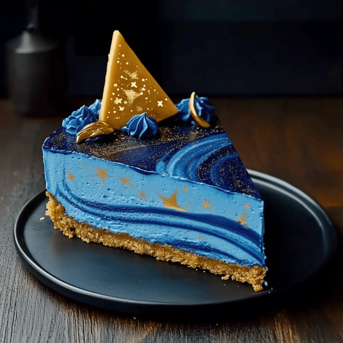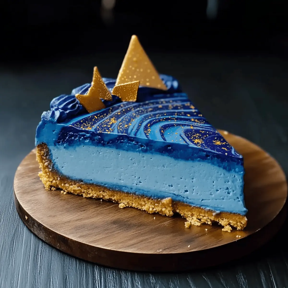 Whimsical Presentation: This cheesecake isn’t just a treat; it’s a masterpiece! With its deep blue base and shimmering purple swirls, it’s designed to dazzle at any gathering.