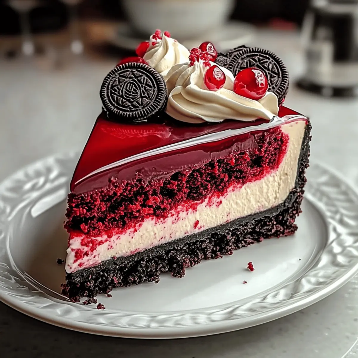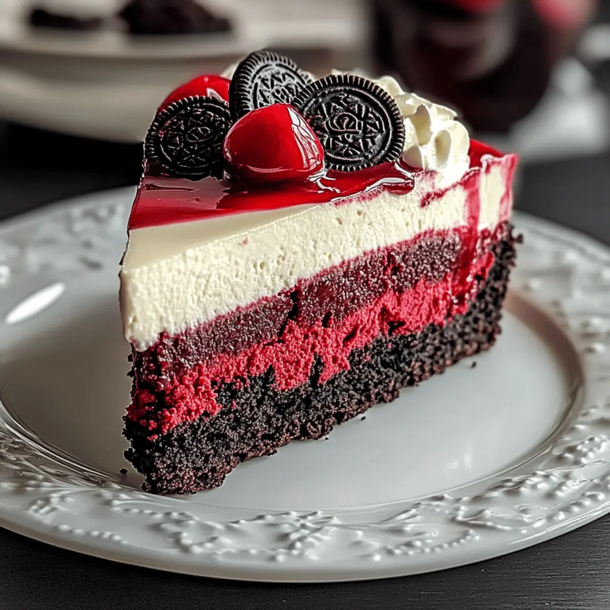 A decadent Red Velvet Oreo Cheesecake combining rich flavors and stunning presentation, perfect for any celebration.