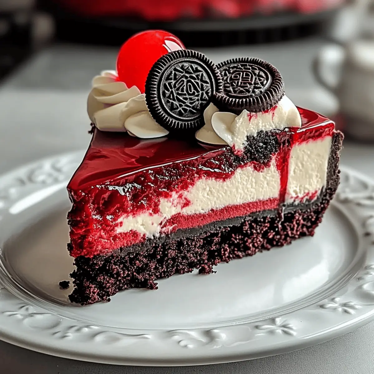 Decadent Flavor Combination: The fusion of rich red velvet, creamy cheesecake, and crunchy Oreos creates an unforgettable taste experience. Eye-Catching Presentation: Its vibrant color and stunning marbled effect make this dessert the star of any gathering. Quick Prep Time: Easily whip it up when unexpected guests arrive, thanks to its simple steps. Gluten-Free Delight: Perfect for satisfying various dietary needs without sacrificing deliciousness. Versatile Serving: Dress it up with whipped cream or chocolate ganache for an elevated touch. Indulge in this unforgettable dessert that promises to impress and satisfy!