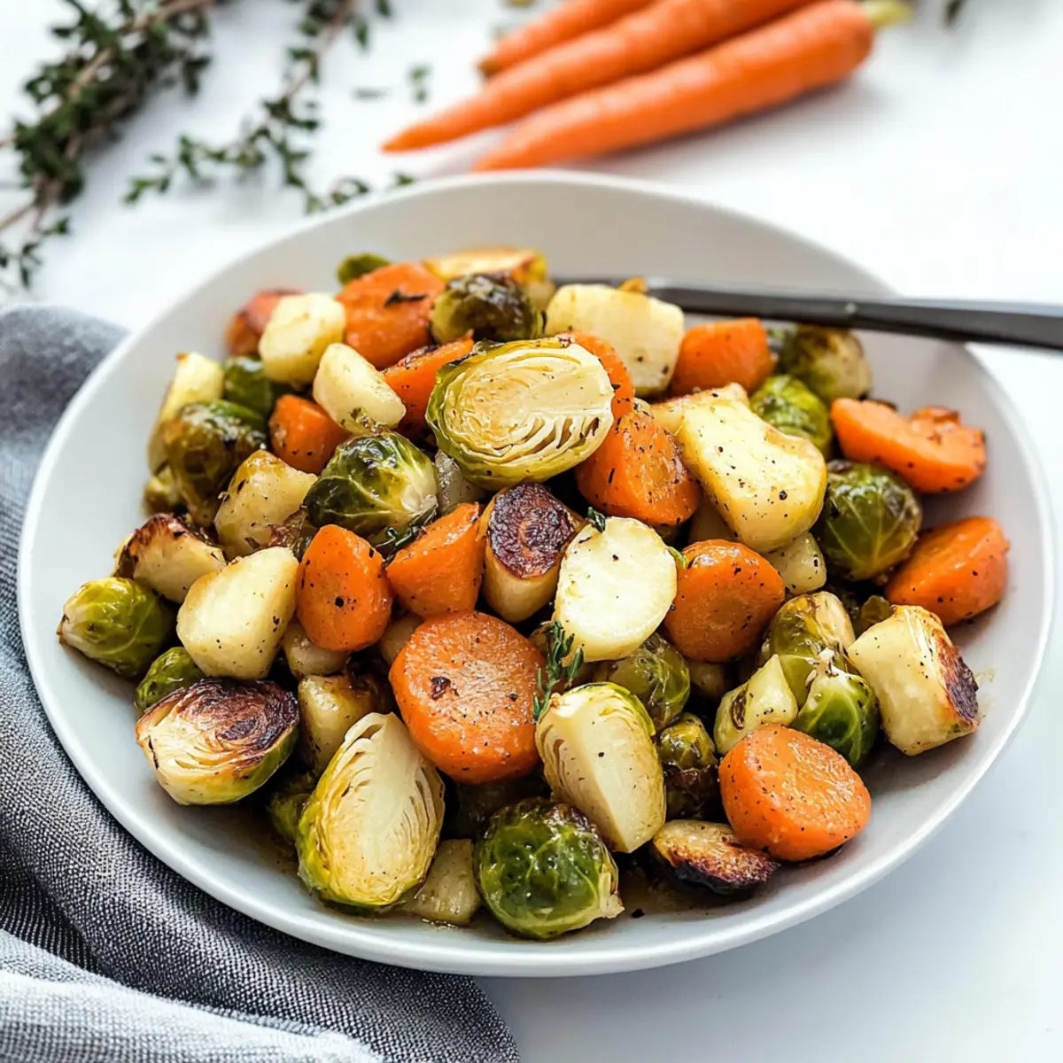 Reheating: Reheat in the oven at 350°F (175°C) for about 10-15 minutes, or until warmed through, to keep the texture crispy. Avoid microwaving to preserve the integrity of the Roasted Brussels Sprouts, Carrots, and Parsnips.